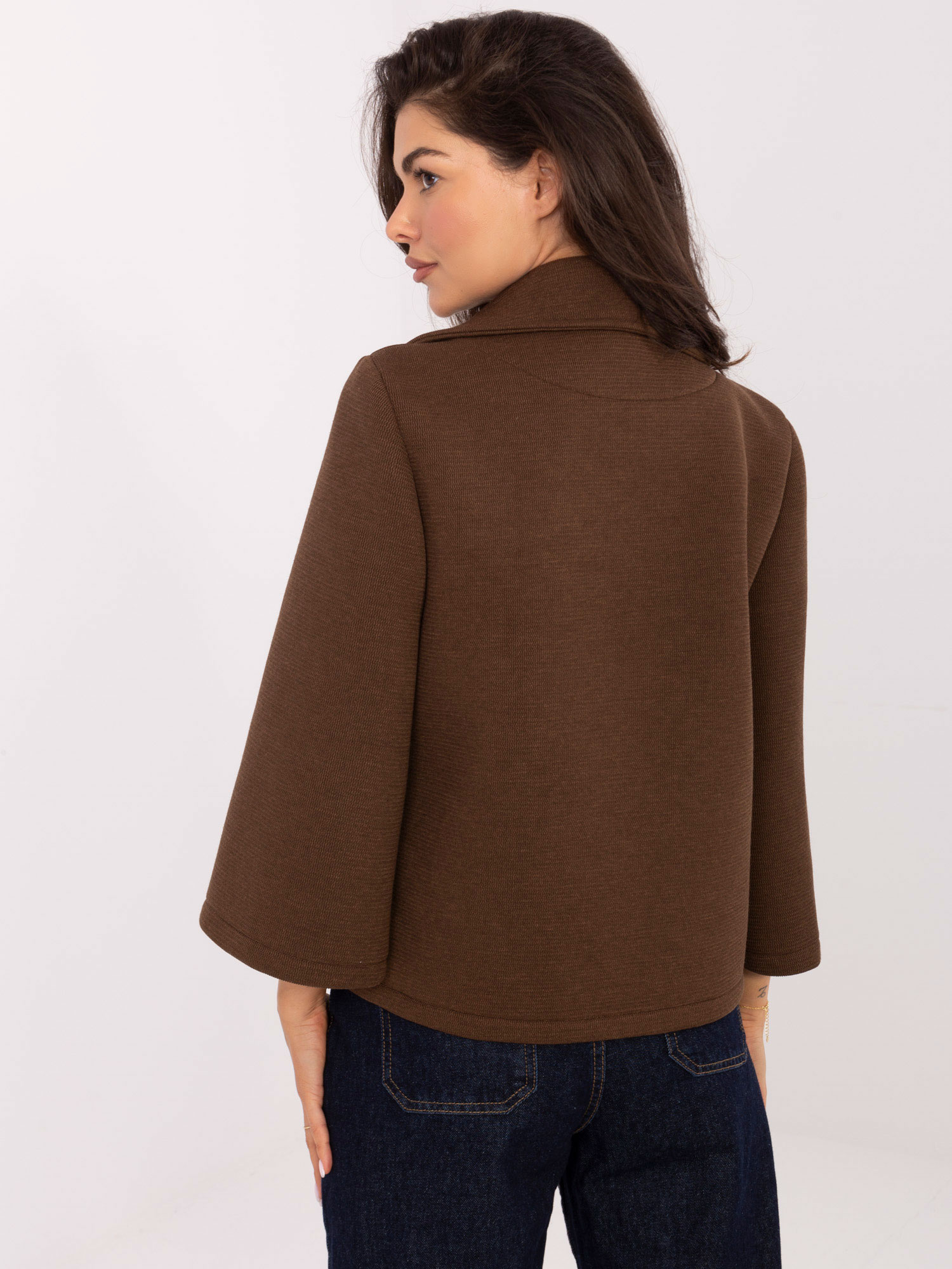 Brązowy jednorzędowy płaszcz damski RUE PARIS .
