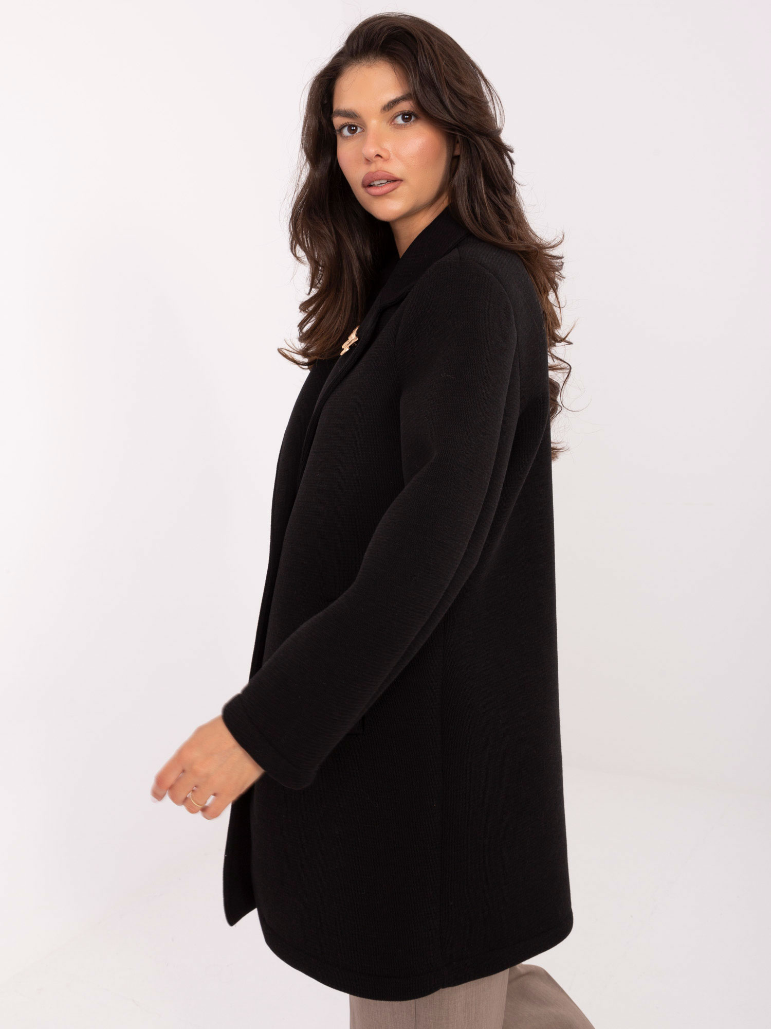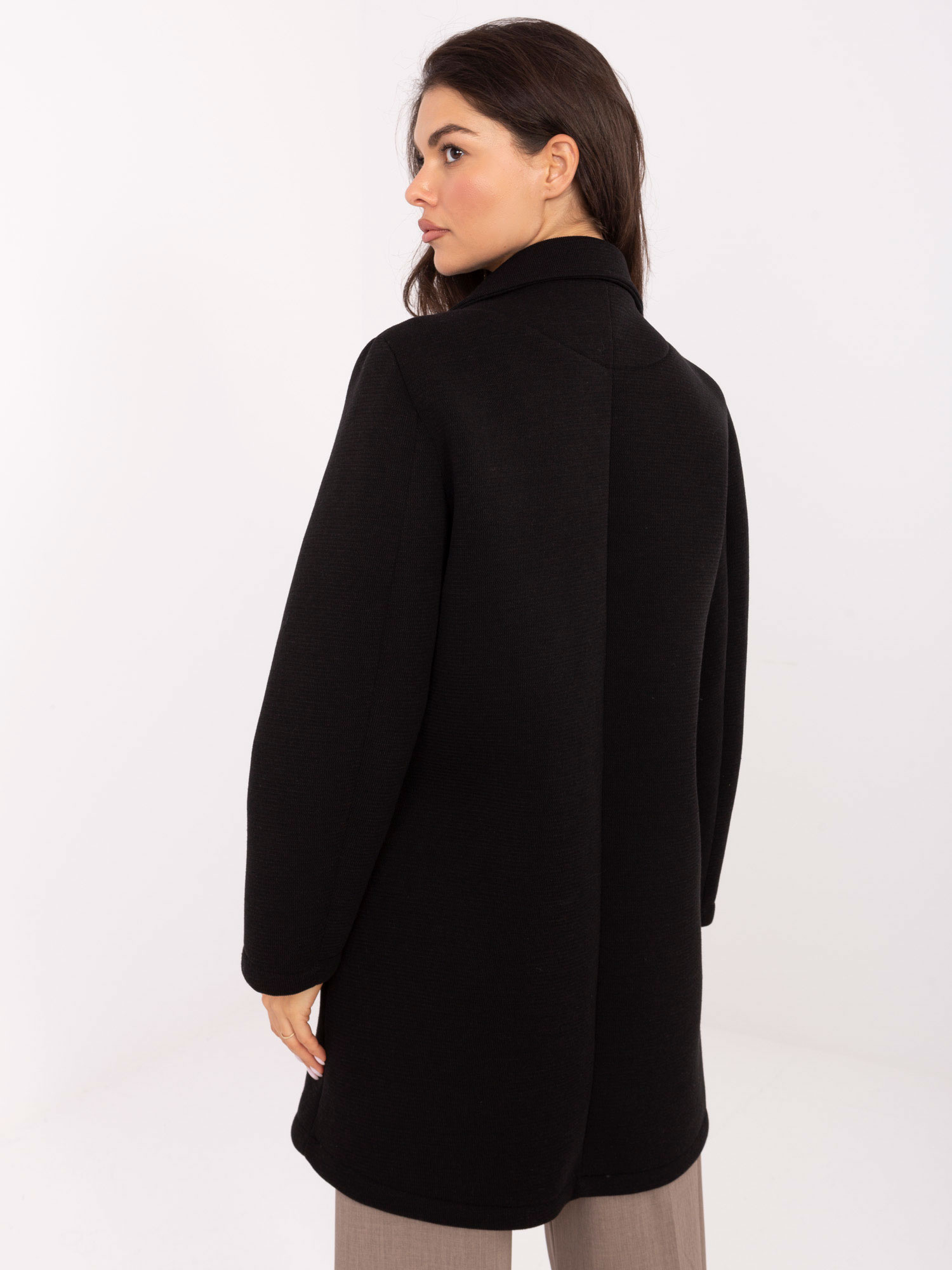 Opinie o Czarny piankowy płaszcz z broszką RUE PARIS