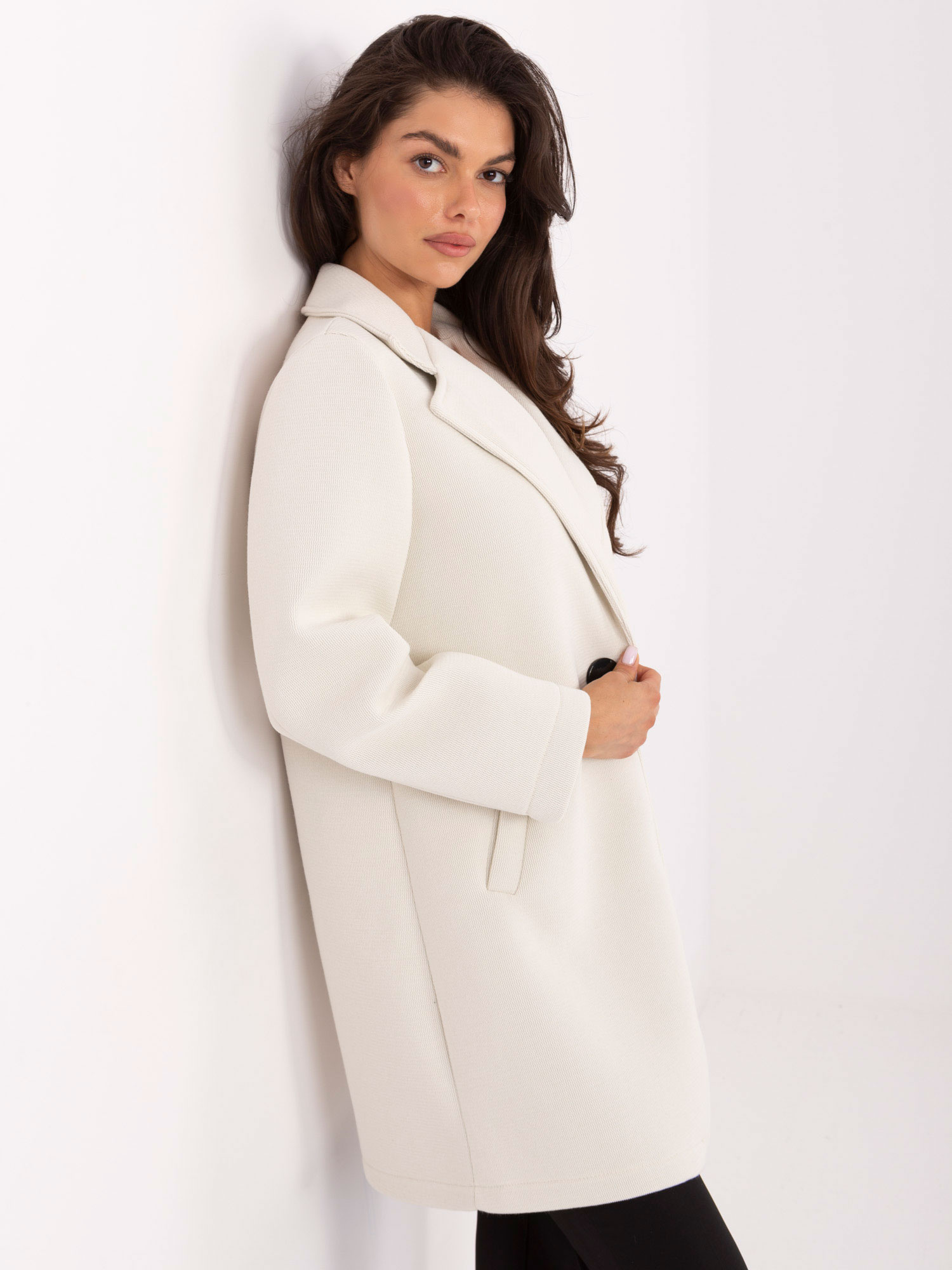 Jasnobeżowy jednorzędowy płaszcz damski RUE PARIS .