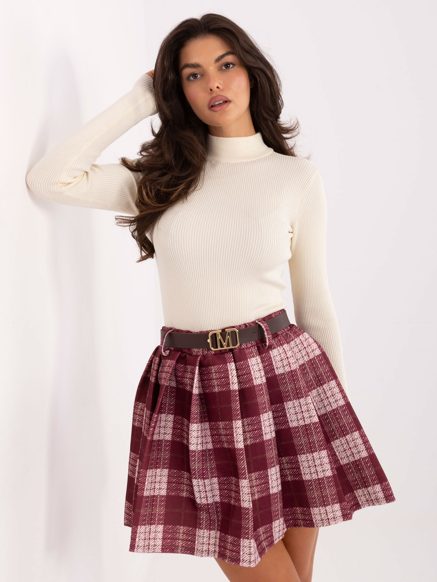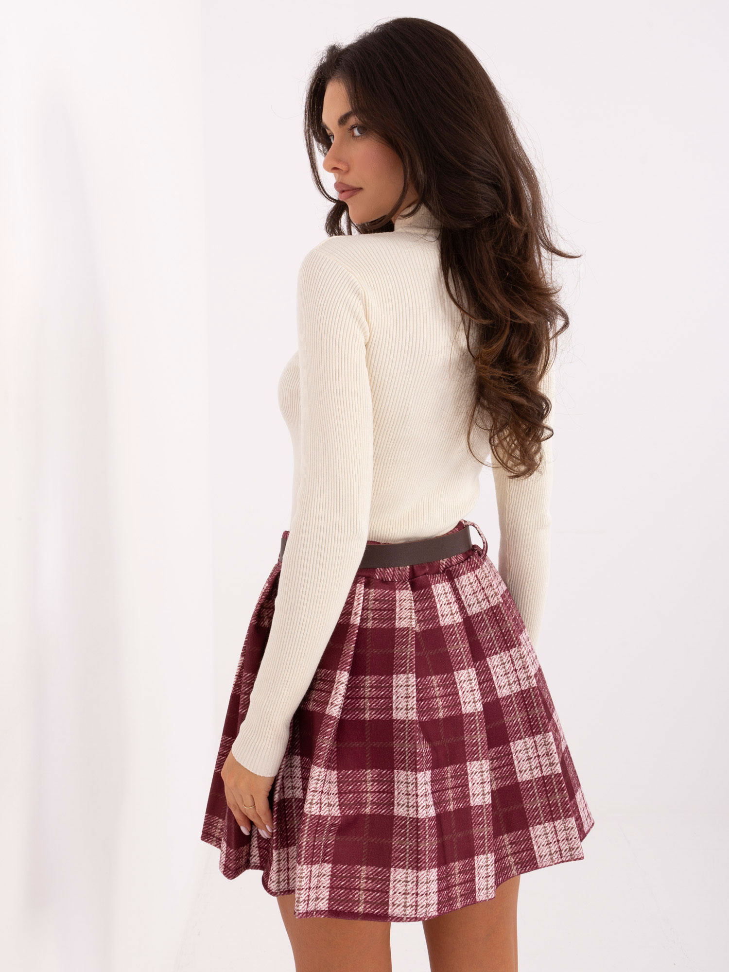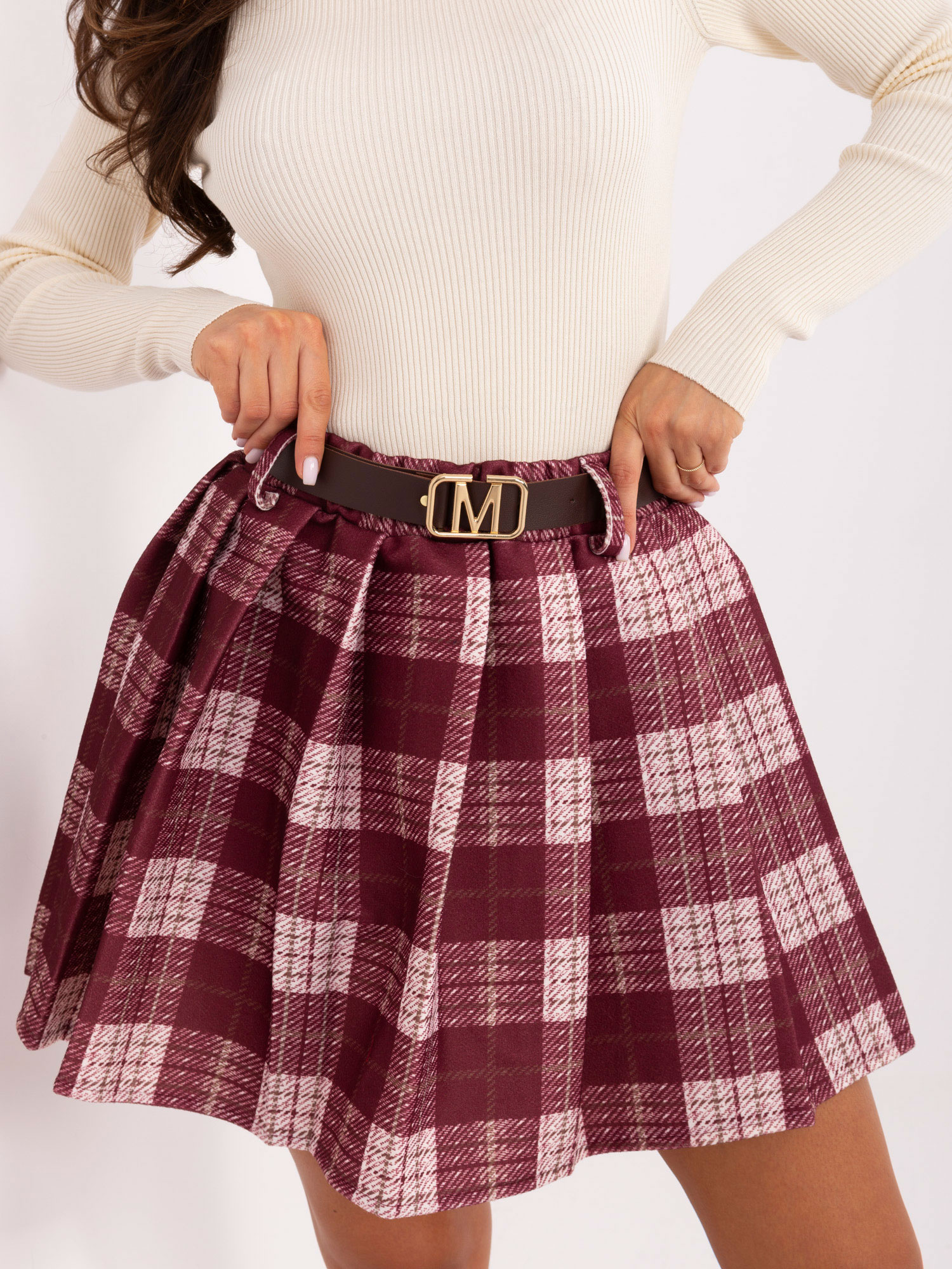 Bordowa plisowana spódnica w kratę RUE PARIS .