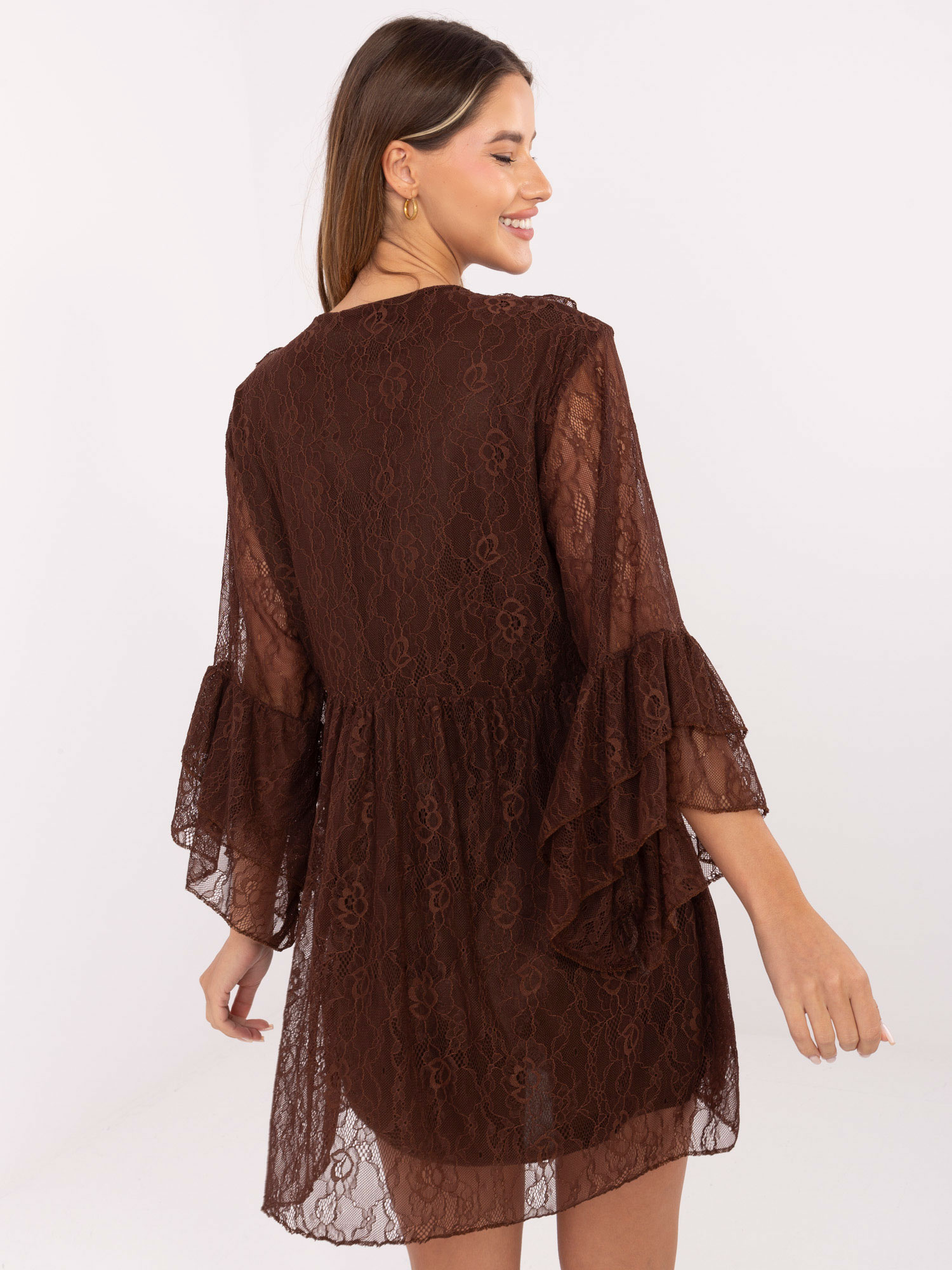 Brązowa krótka sukienka z wiązaniem przy dekolcie