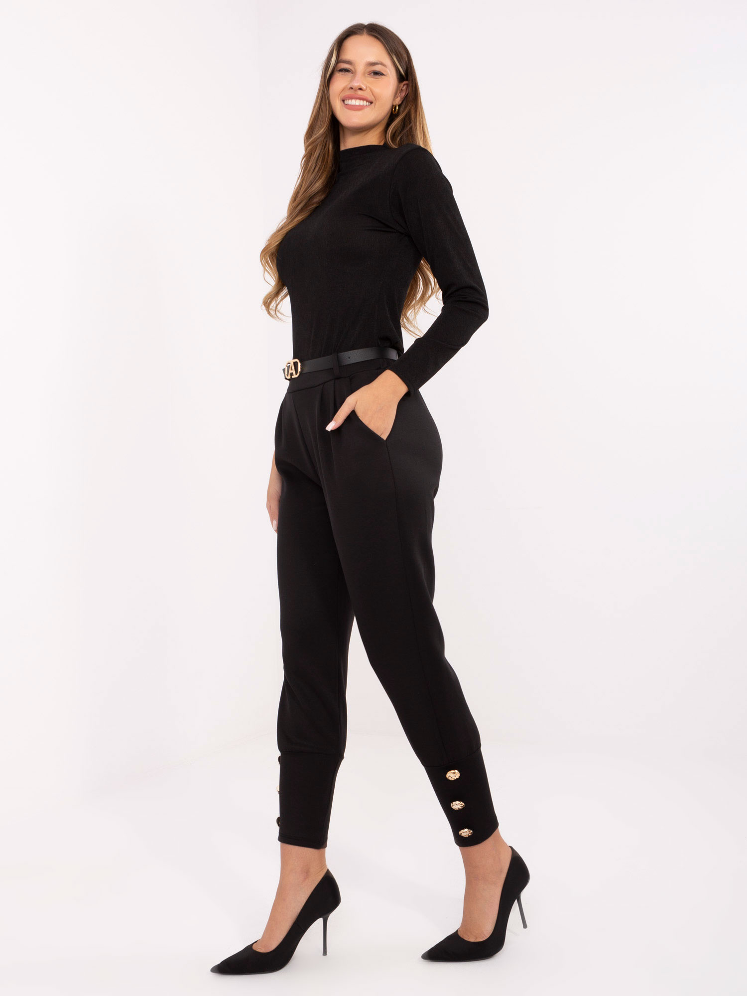 Czarne dresowe spodnie z ozdobnymi guzikami .