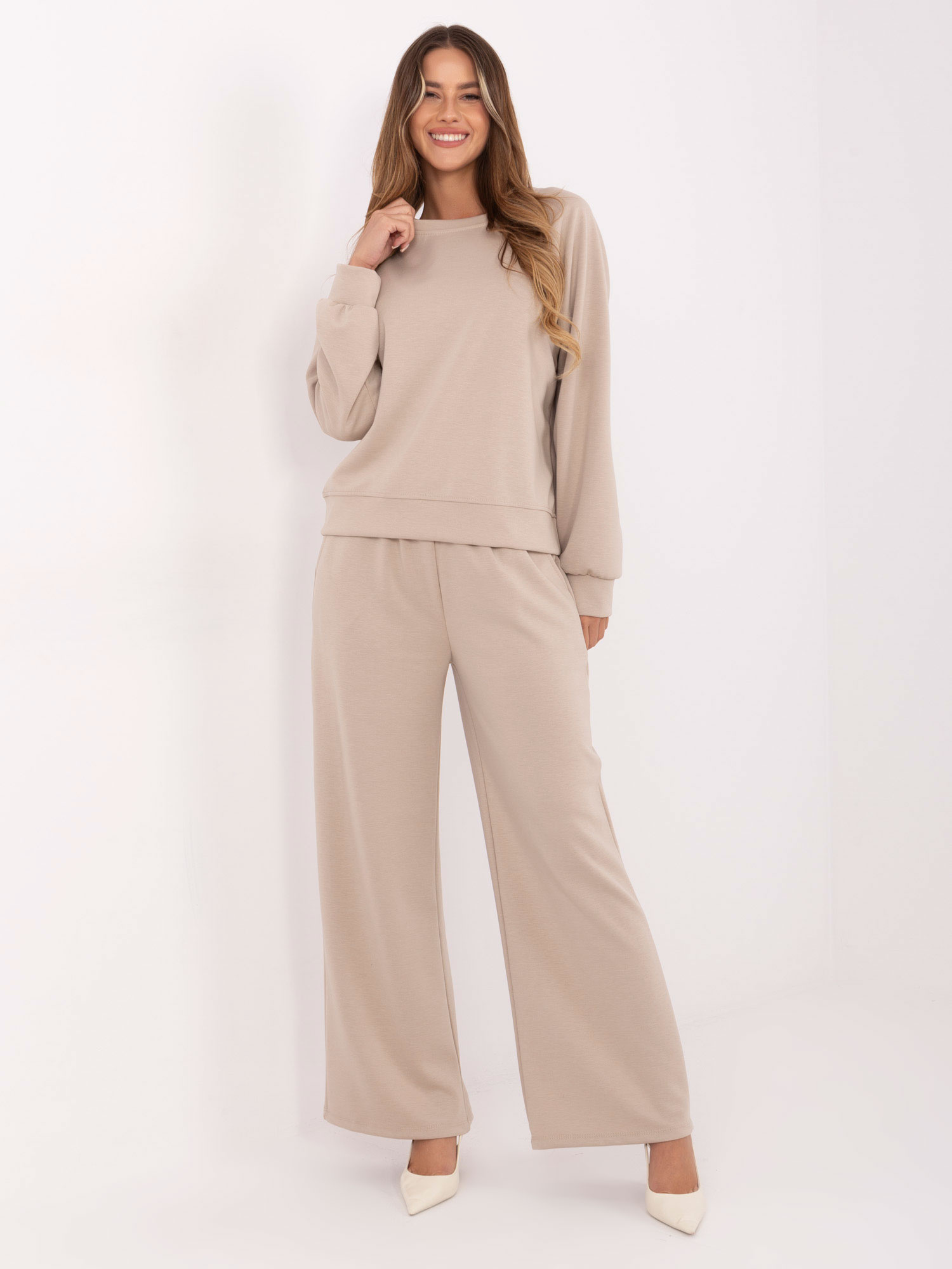 Beżowy dwuczęściowy komplet w jednolitym kolorze