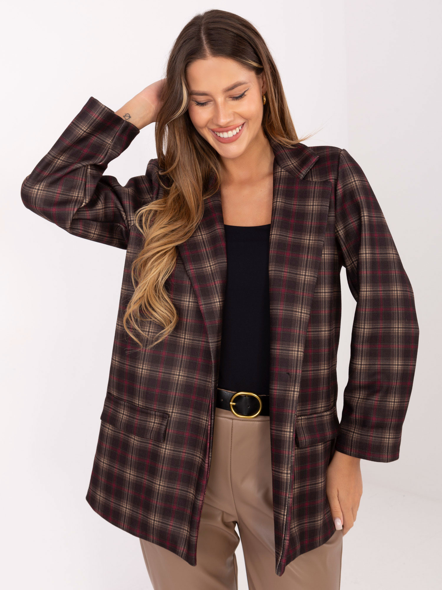 Brązowo-camelowa marynarka z zapięciem na guzik