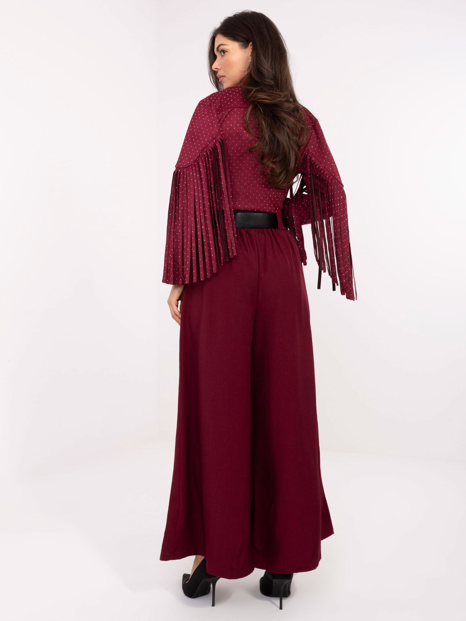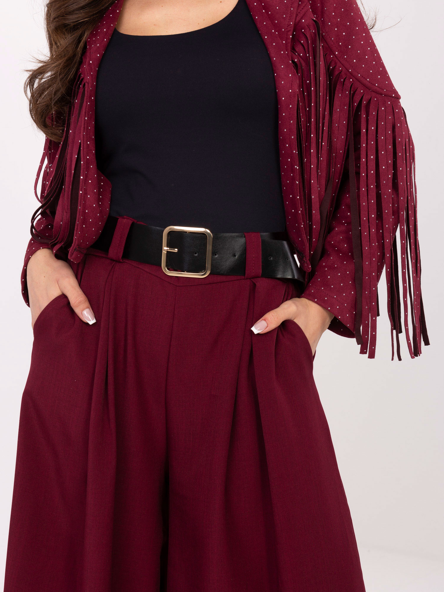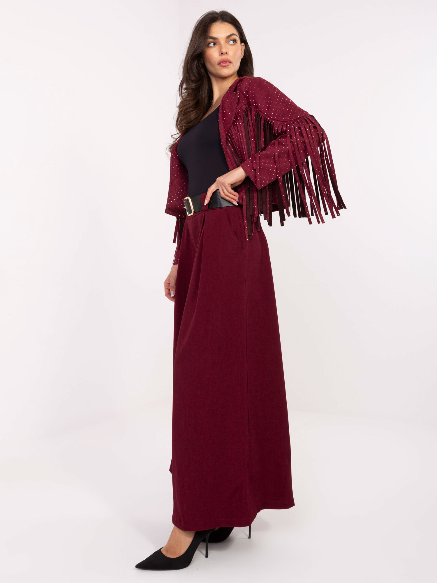 Bordowe garniturowe spodnie z szeroką nogawką .
