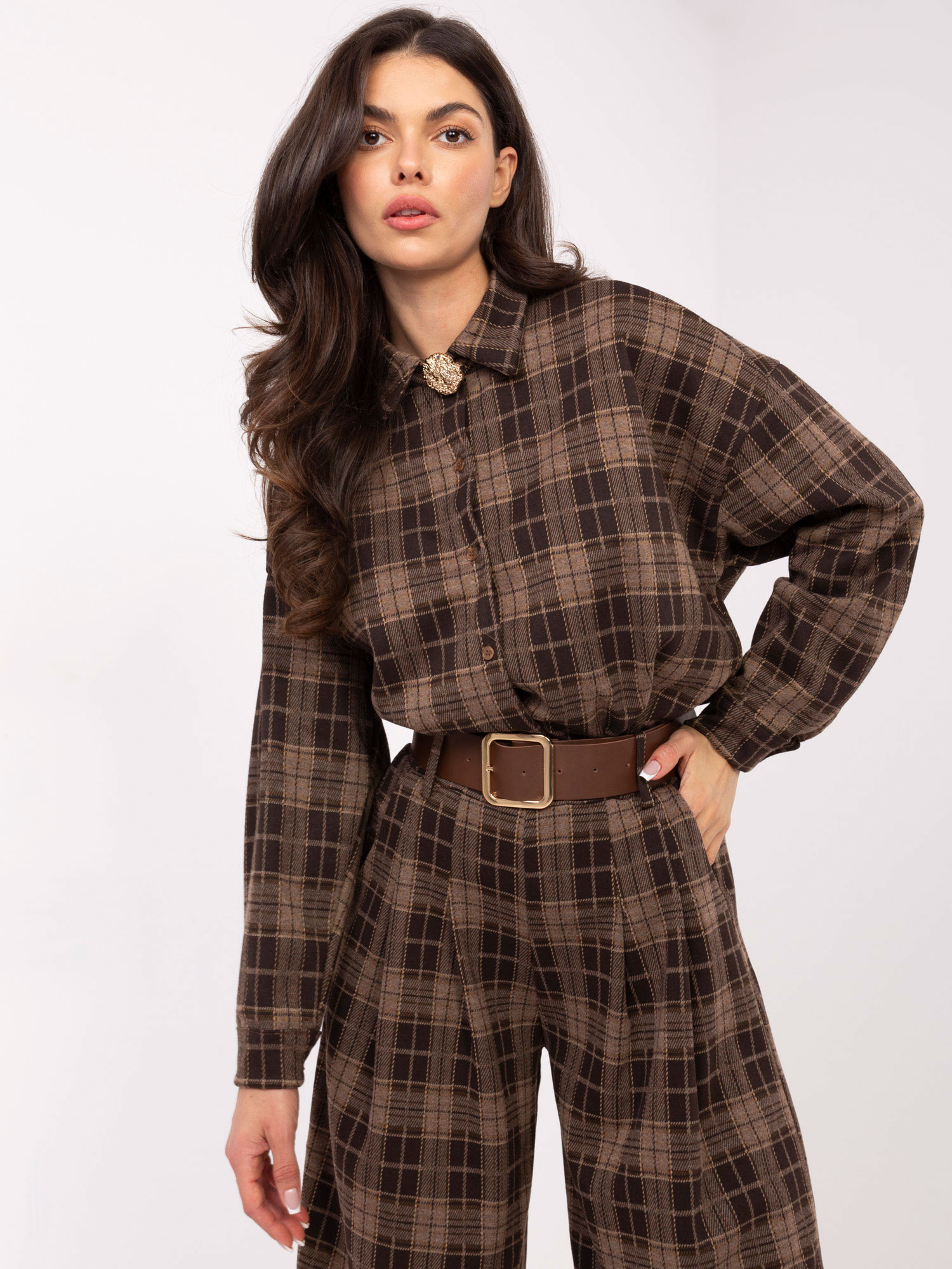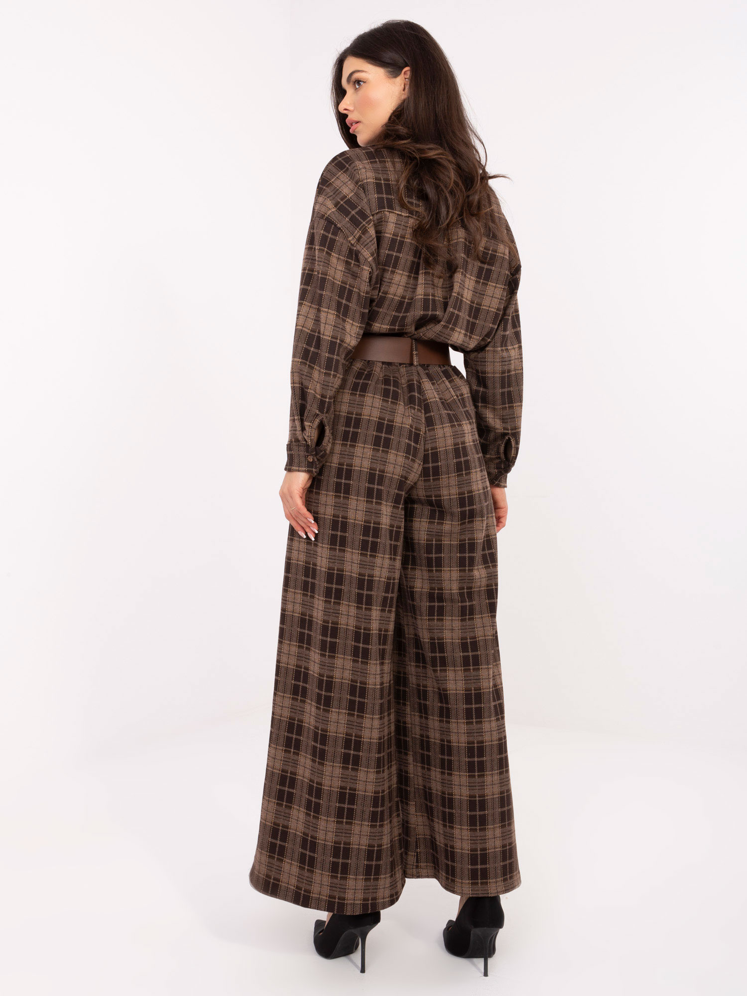 Brązowe flanelowe spodnie w kratę