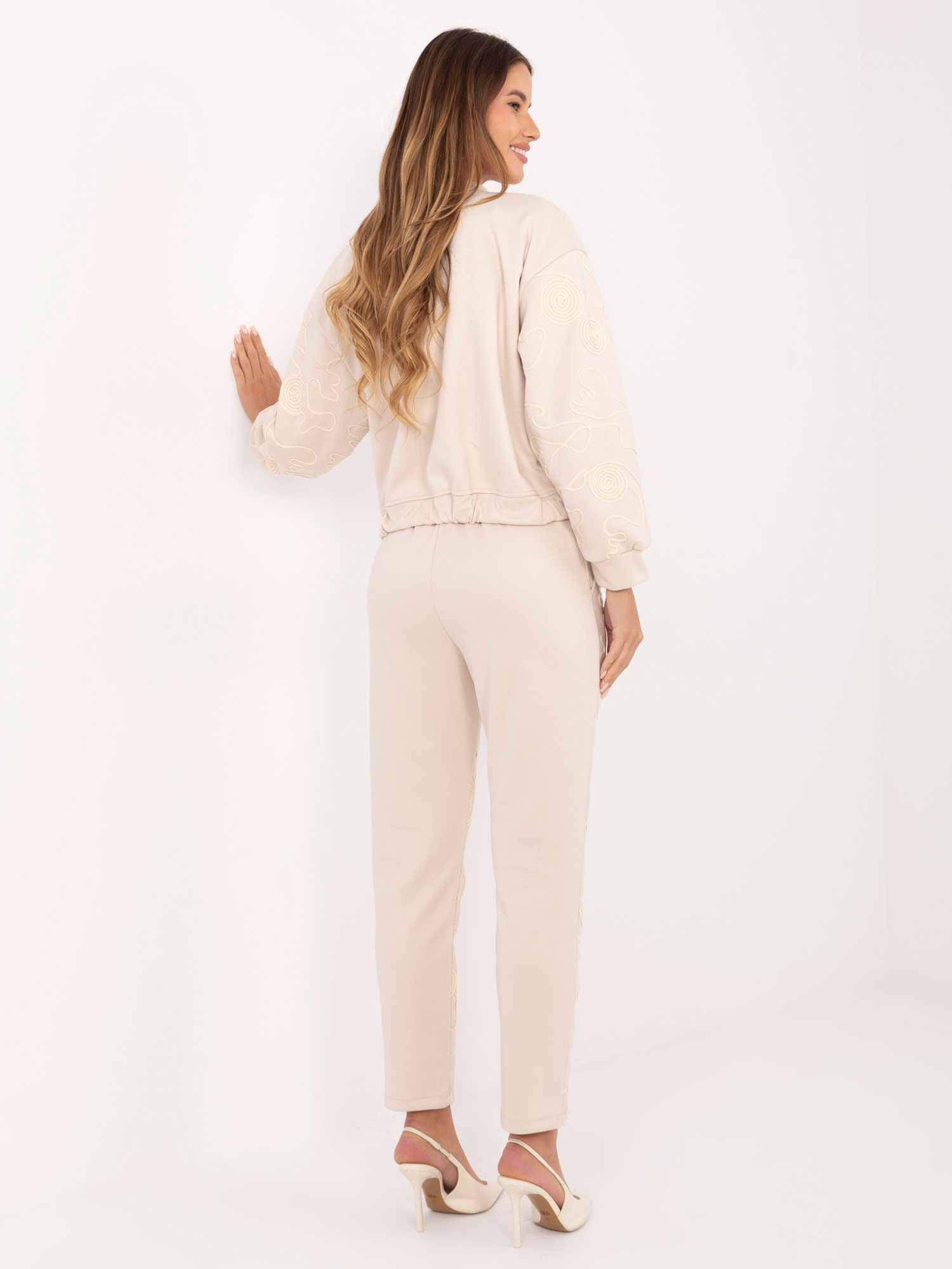 Jasnobeżowy damski komplet z bluzą bomberką .