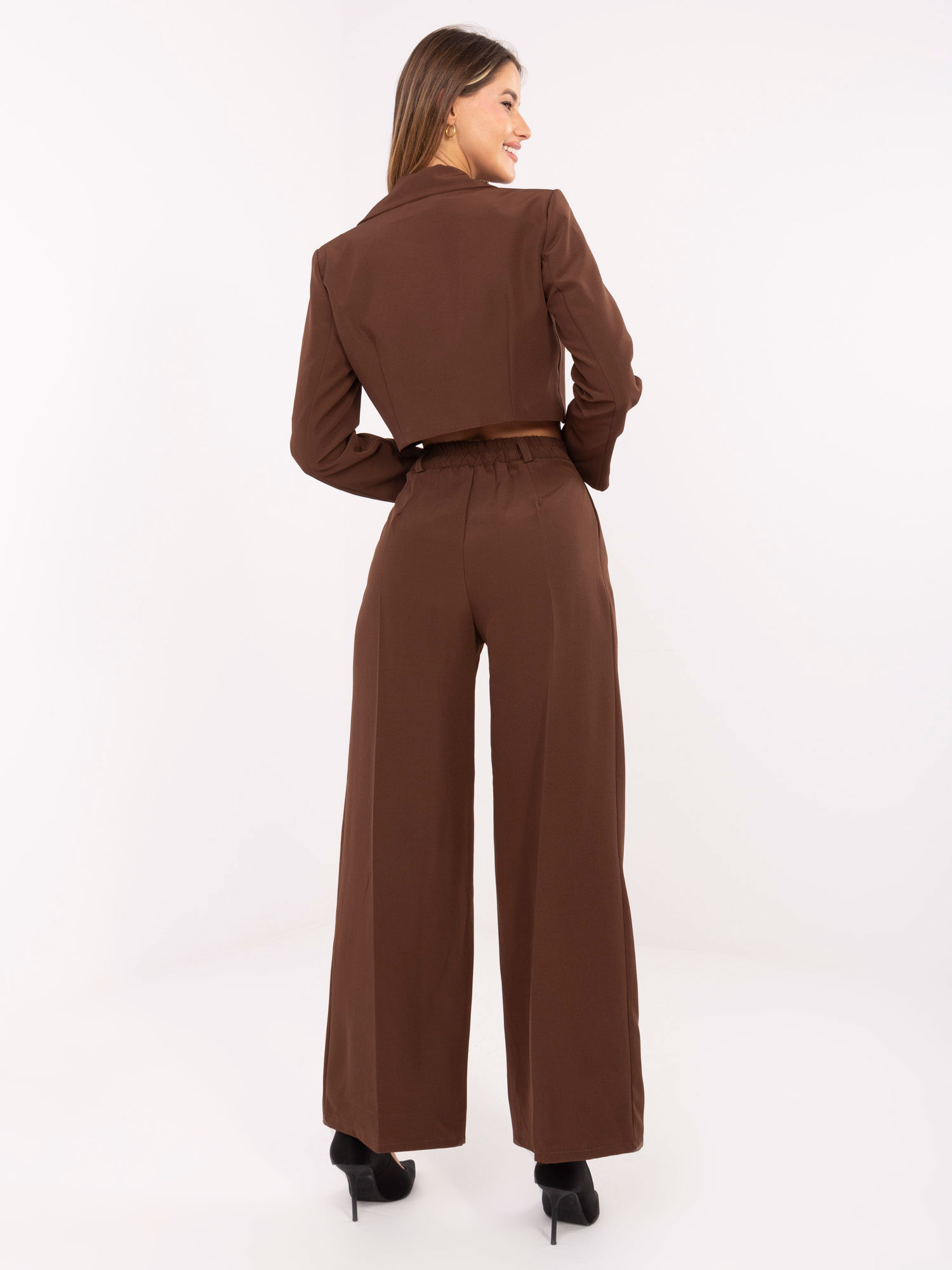 Brązowy elegancki komplet w jednolitym kolorze RUE PARIS .