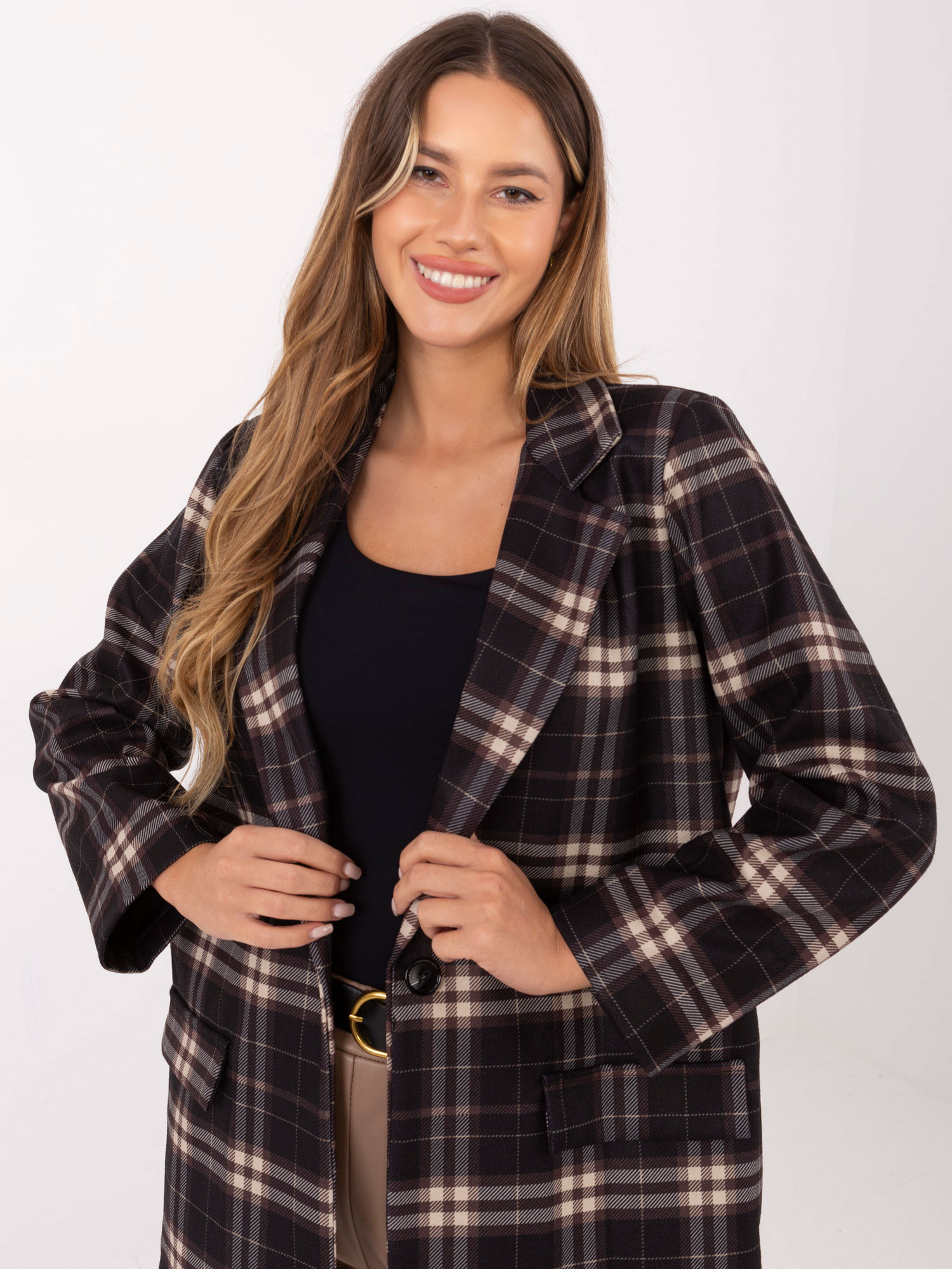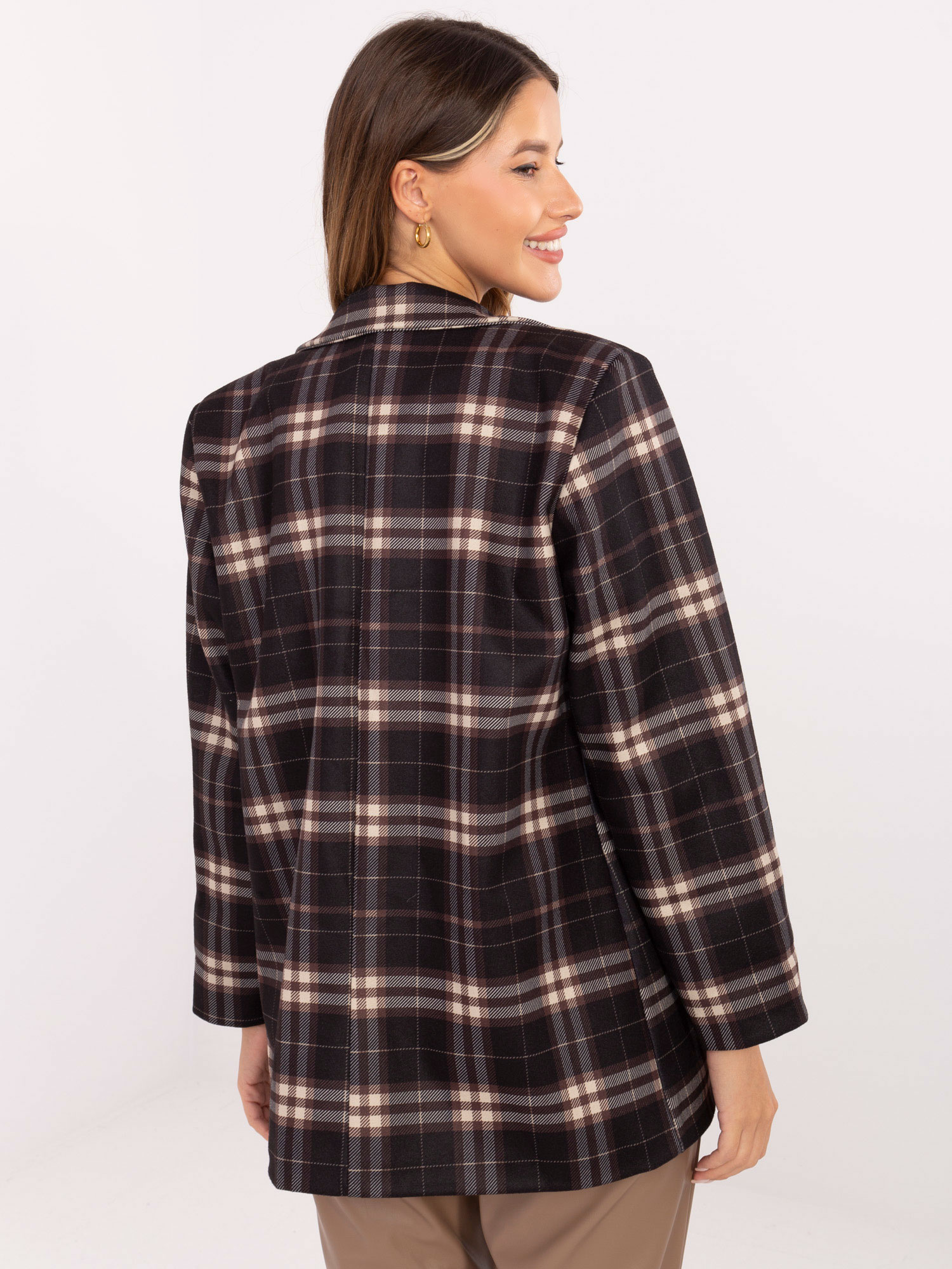 Wymiary marynarki w rozmiarze one size mierzone na płasko: szerokość pod pachami - 58 cm, długość rękawa - 60 cm, szerokość w biodrach - 59 cm, długość całkowita - 77 cm.