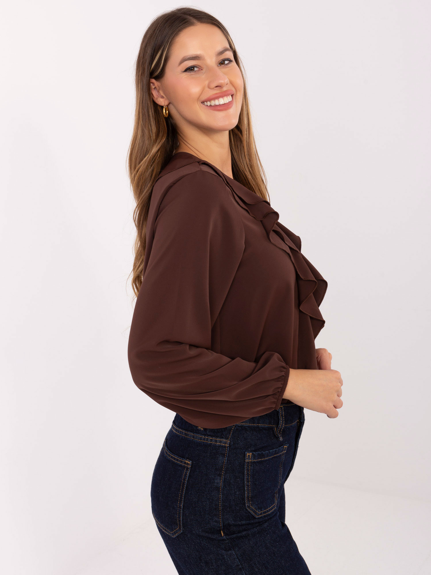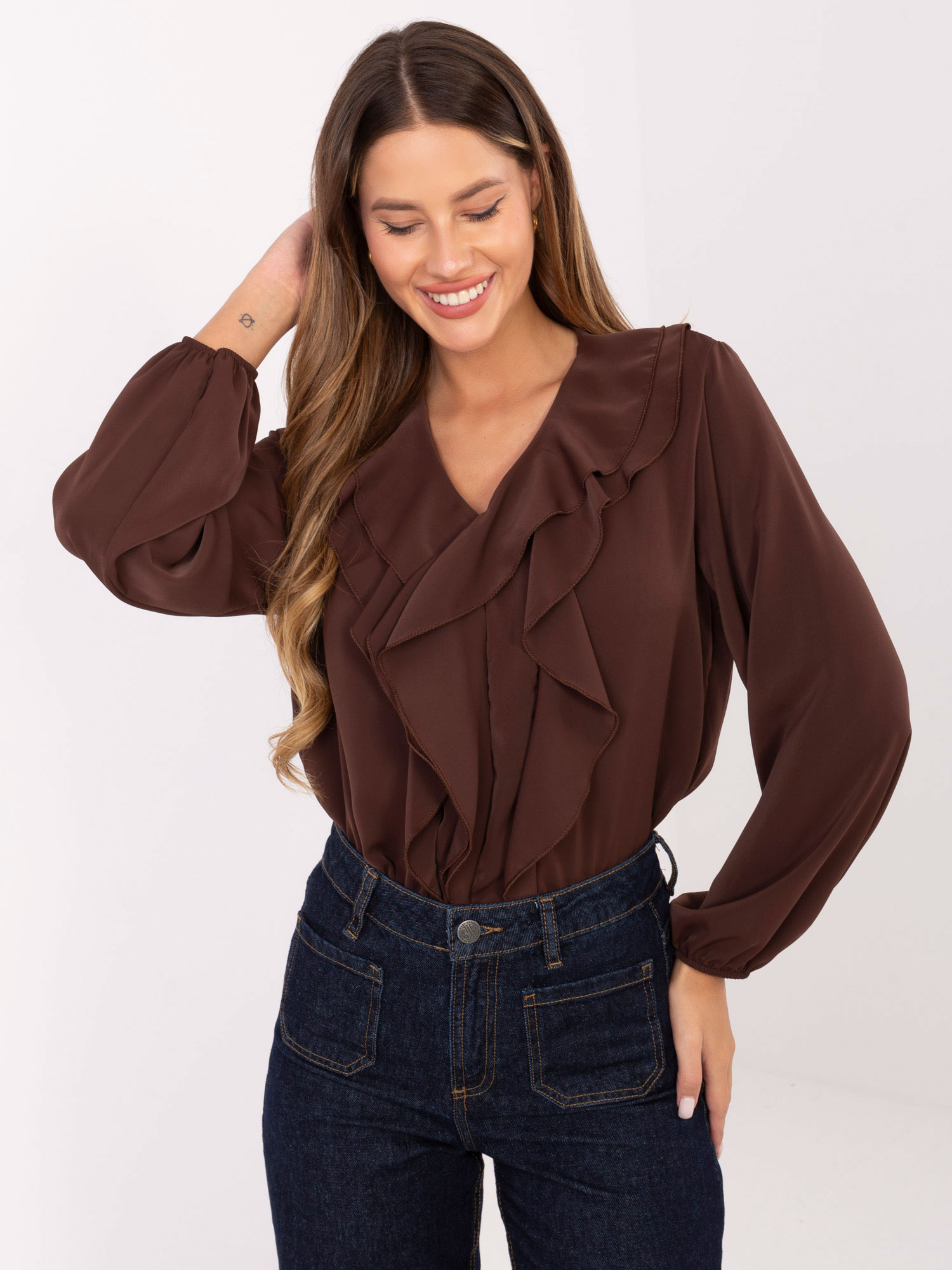 Ciemnobrązowa bluzka z bufiastym rękawem RUE PARIS .