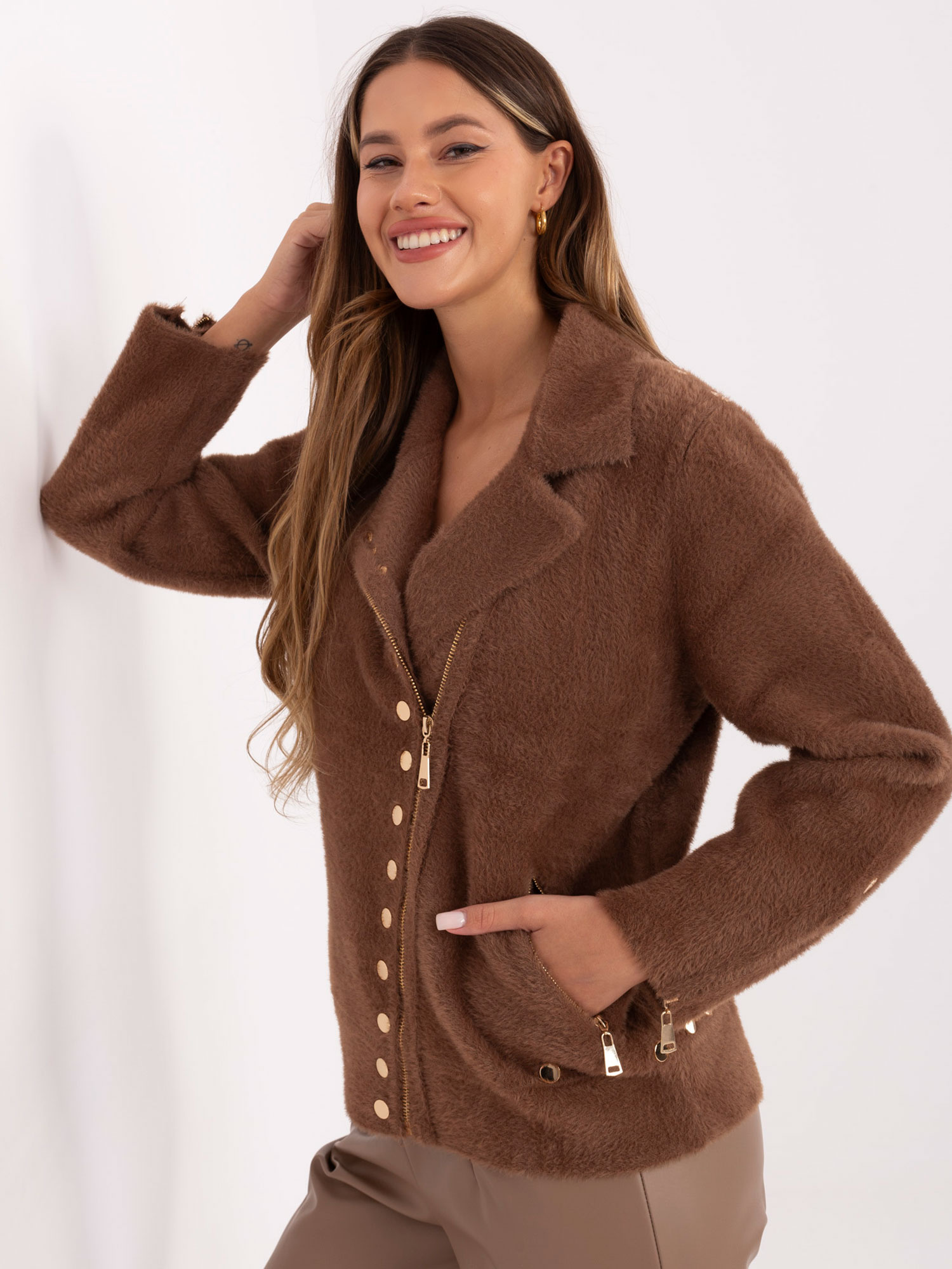 Jasnobrązowa kurtka alpaka z dodatkiem wełny
