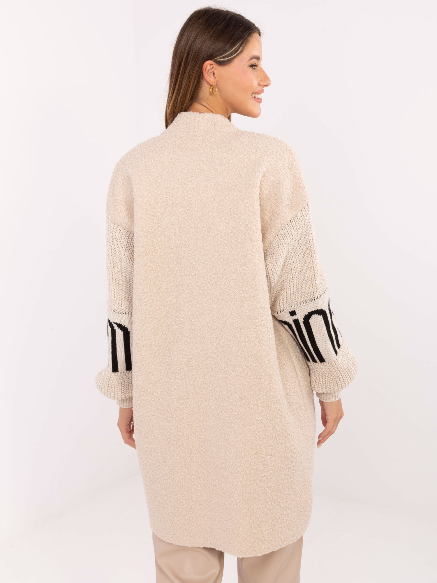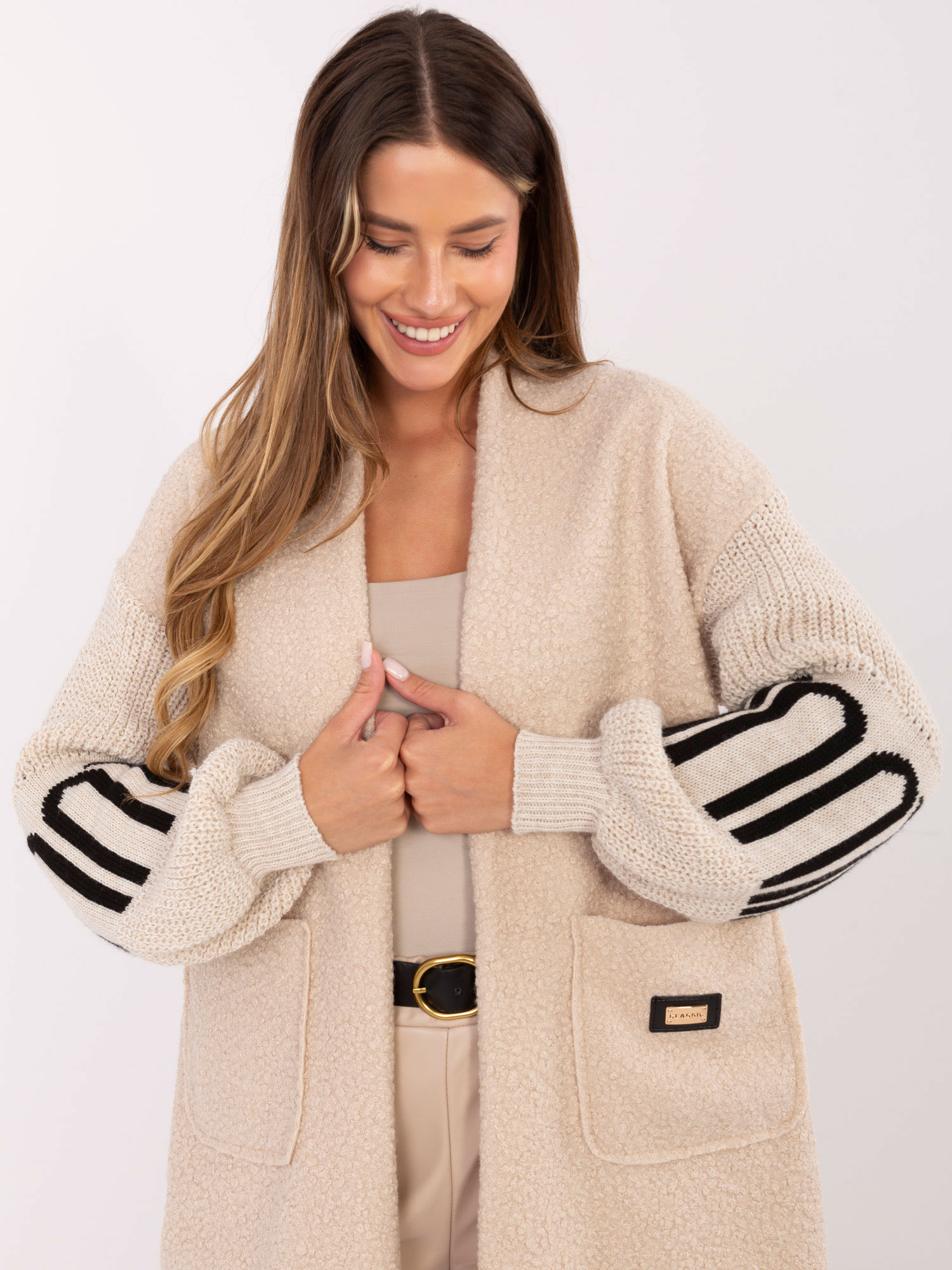 Jasnobeżowy kardigan boucle z bufiastymi rękawami