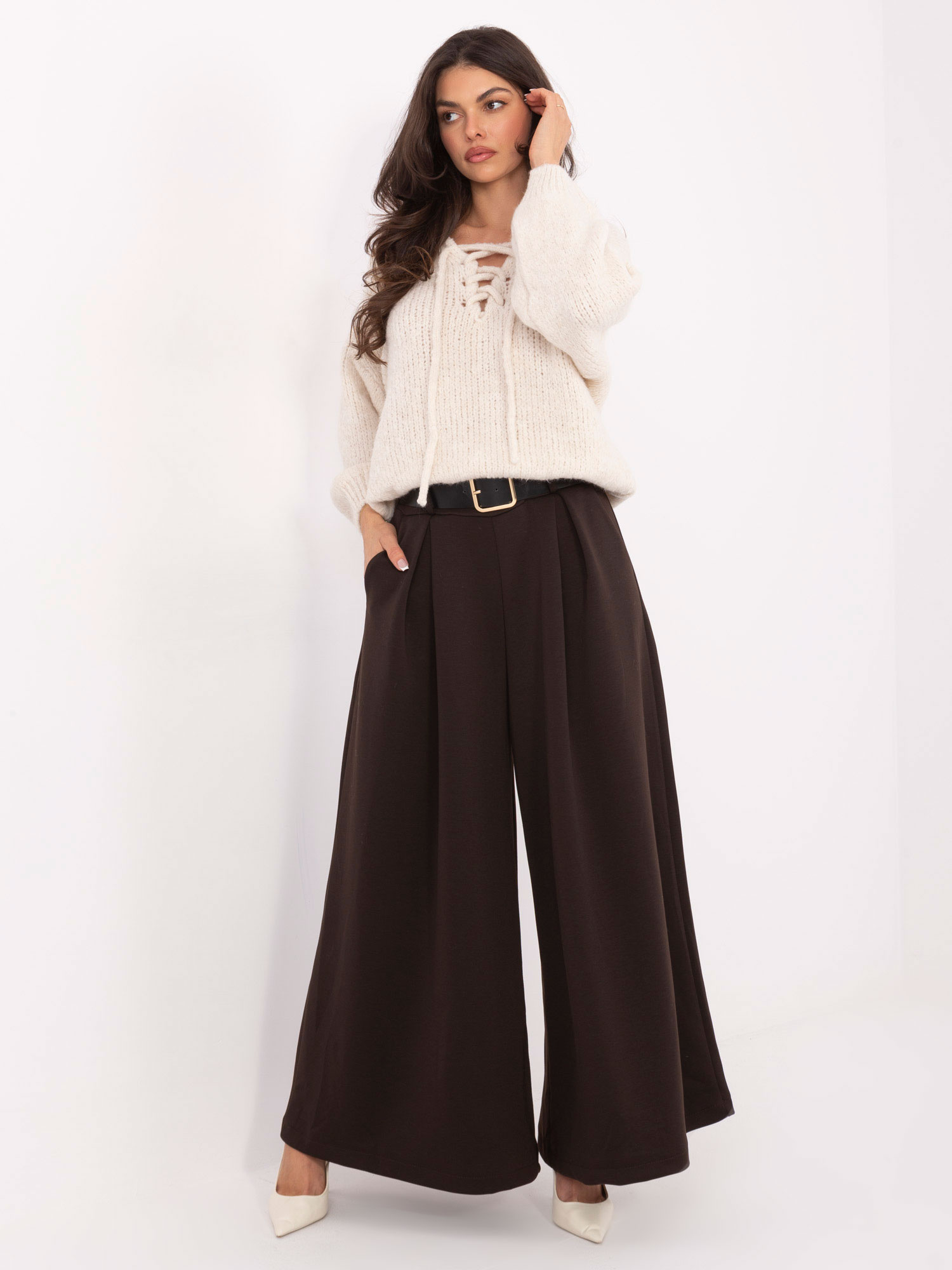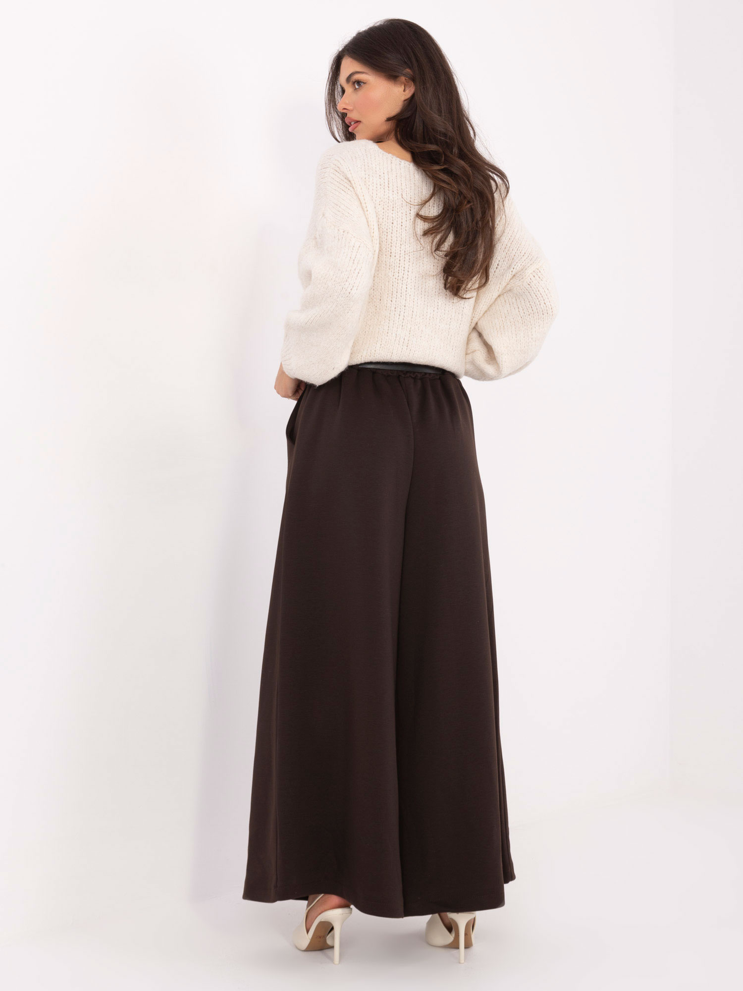 Wymiary spodni w rozmiarze one size: szerokość w pasie - 39 cm (na płasko), szerokość spodni w pasie - 74 cm (po rozciągnięciu), szerokość w biodrach - 73 cm, długość spodni - 105 cm.