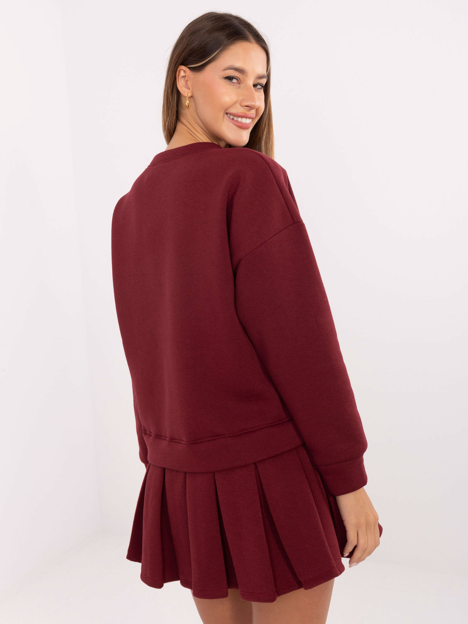 Bordowa dresowa sukienka z plisowanym dołem RUE PARIS .
