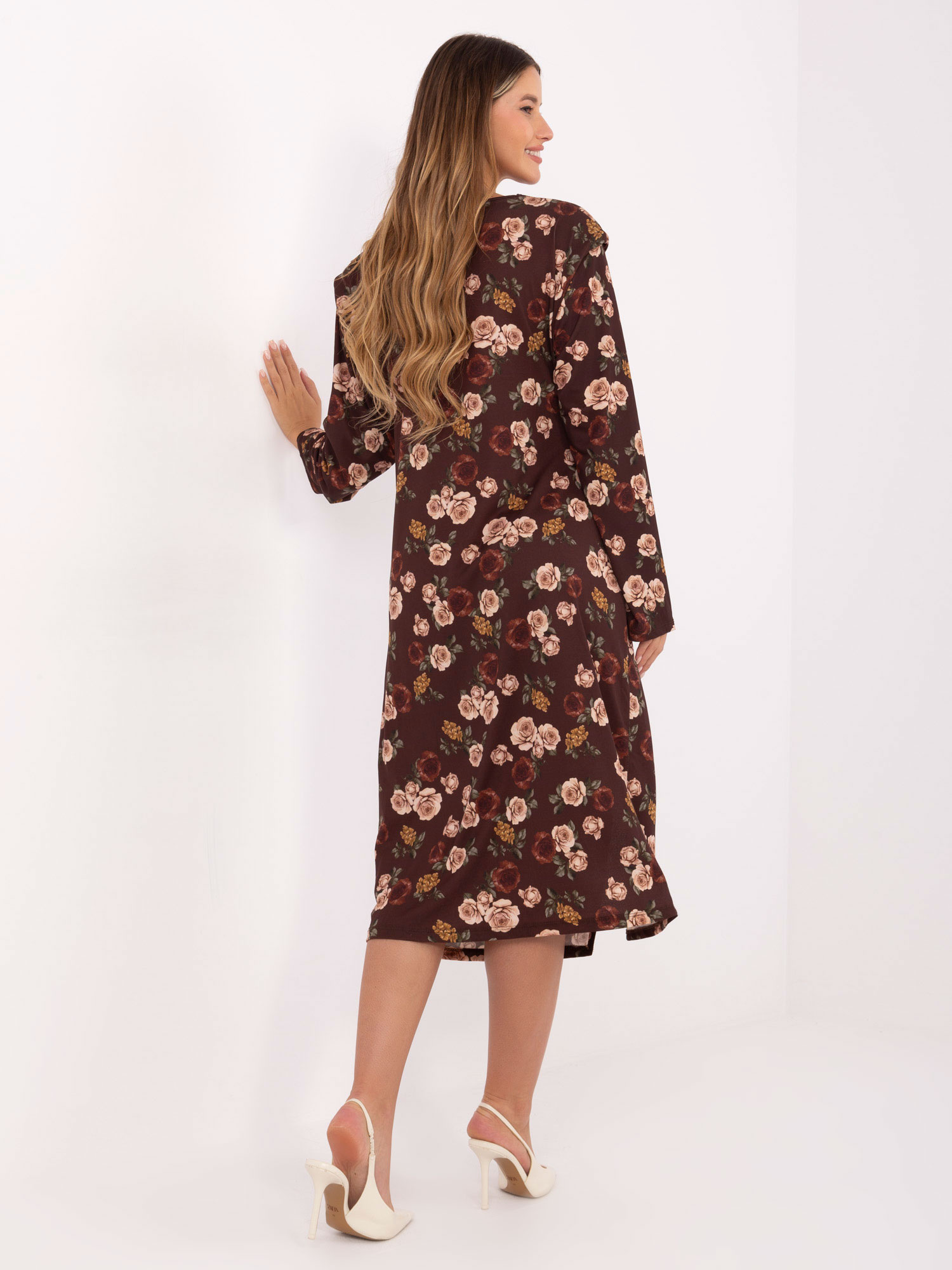 Brązowa sukienka z poduszkami na ramionach RUE PARIS .