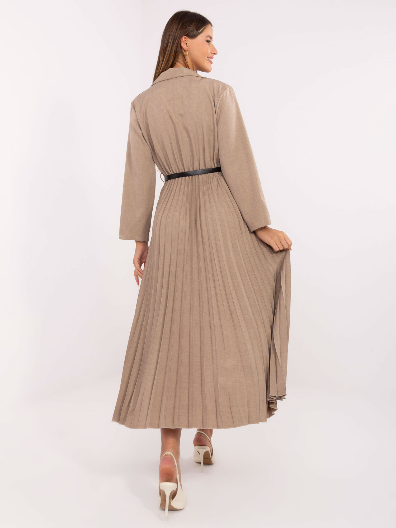 Beżowa długa sukienka z marynarkową górą