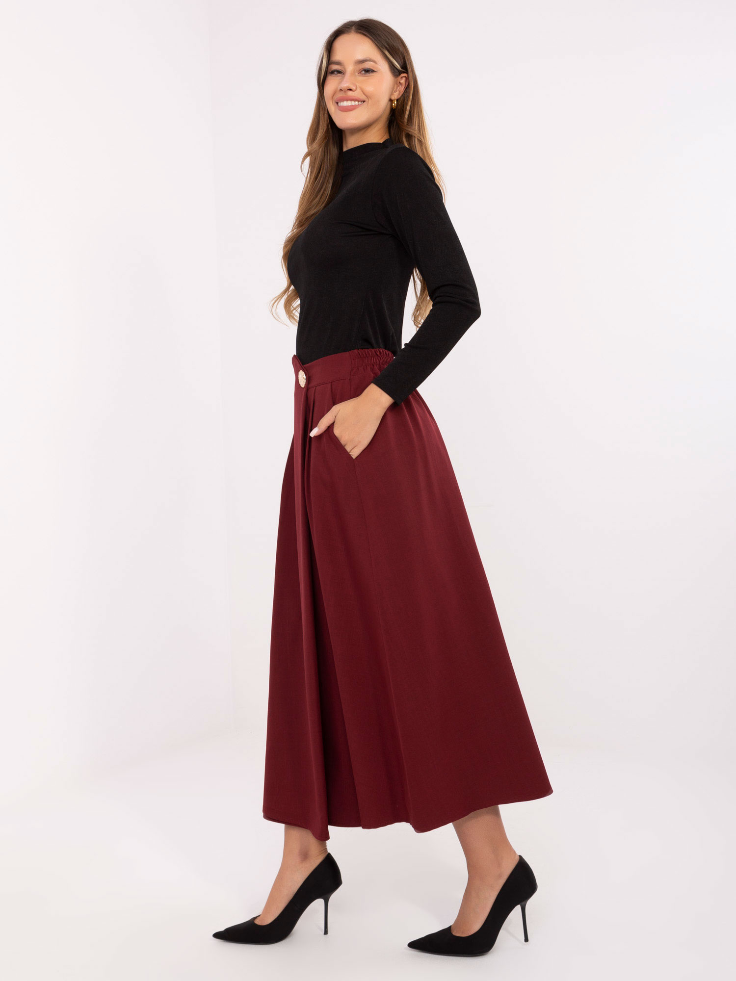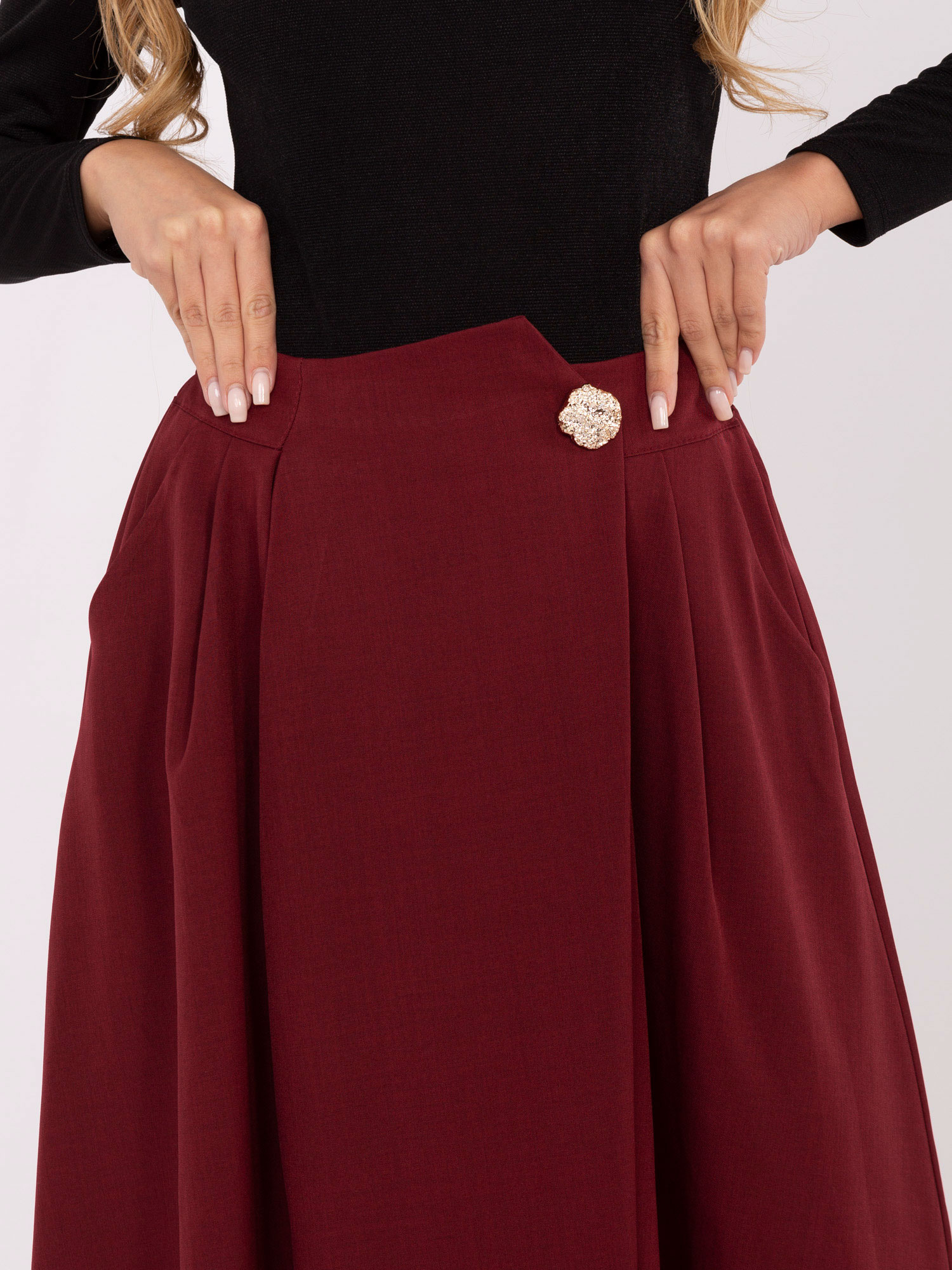 Bordowa rozkloszowana spódnica z kieszeniami RUE PARIS .