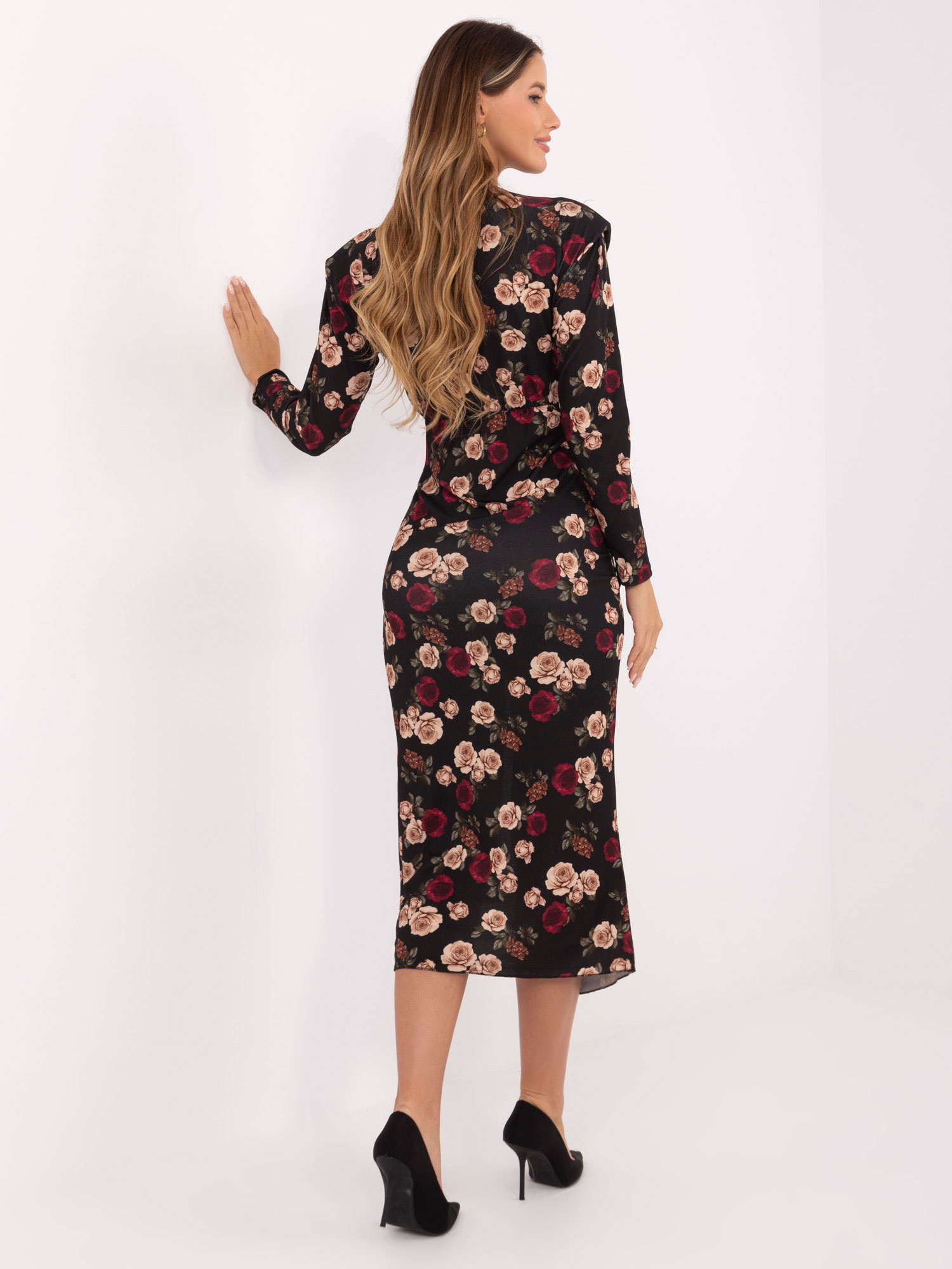 Wymiary sukienki w rozmiarze one size: szerokość pod pachami - 54 cm, szerokość w talii - 32 cm, długość rękawa - 56 cm, szerokość w biodrach - 46 cm, długość całkowita - 138 cm.