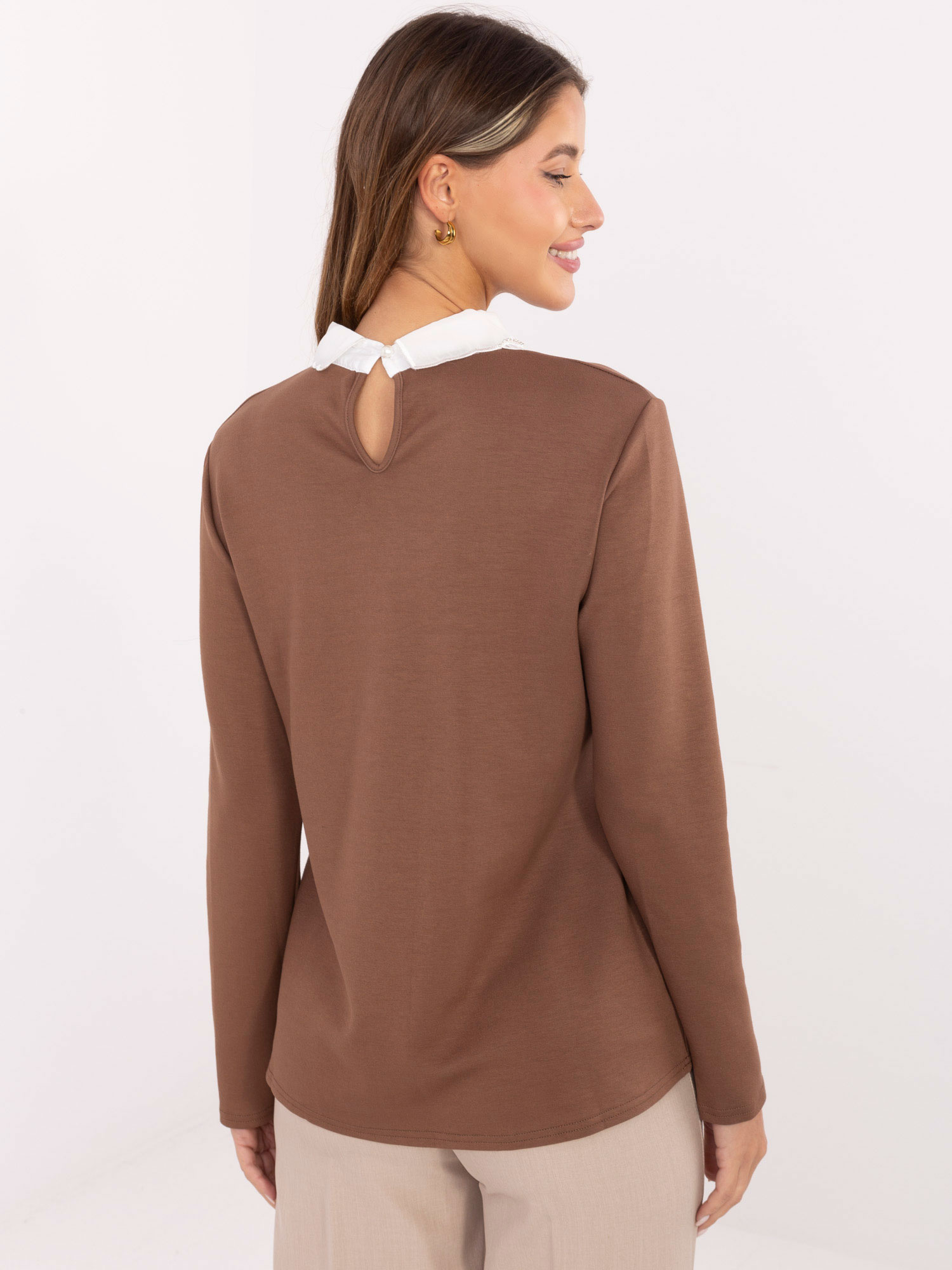 Jasnobrązowa wizytowa bluzka z kołnierzykiem .