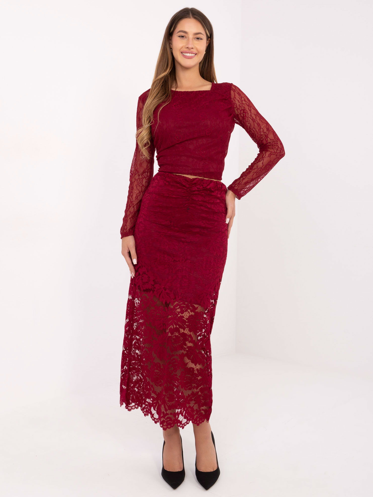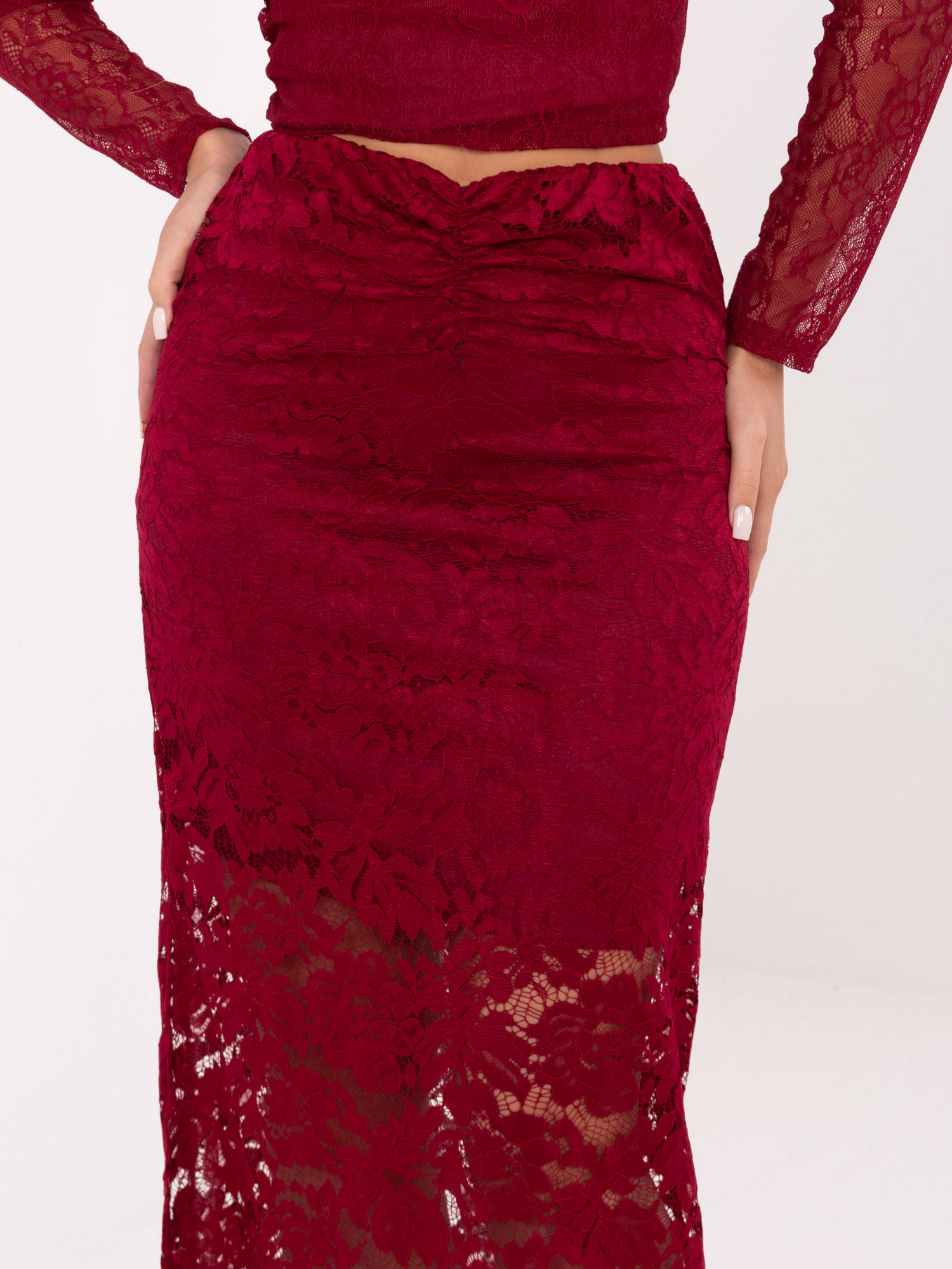 Wymiary spódnicy w rozmiarze one size: szerokość w pasie - 31 cm (na płasko), szerokość w pasie - 65 cm (po rozciągnięciu), długość całkowita - 97 cm.