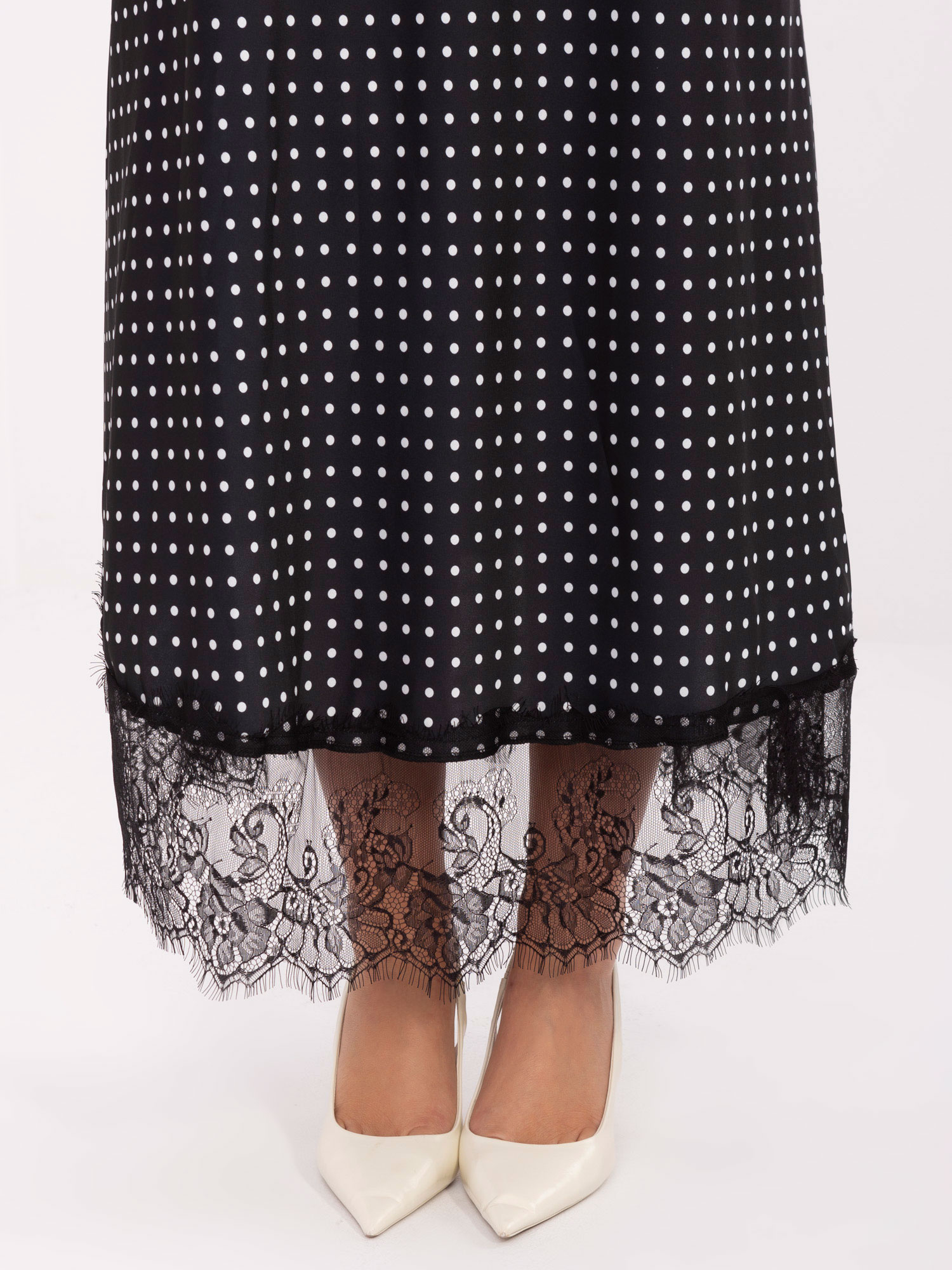 Wymiary spódnicy w rozmiarze one size mierzone na płasko: szerokość w pasie - 35 cm (na płasko), szerokość w pasie - 52 cm (po rozciągnięciu), długość całkowita - 99 cm.