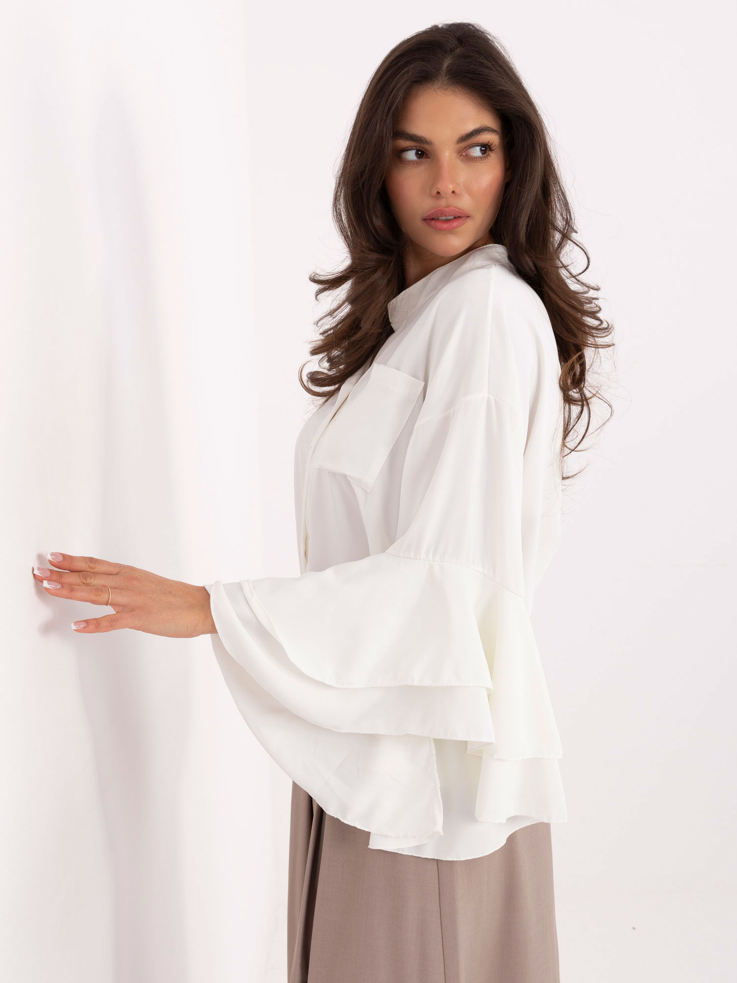 Ecru koszula z falbankami przy rękawach RUE PARIS .