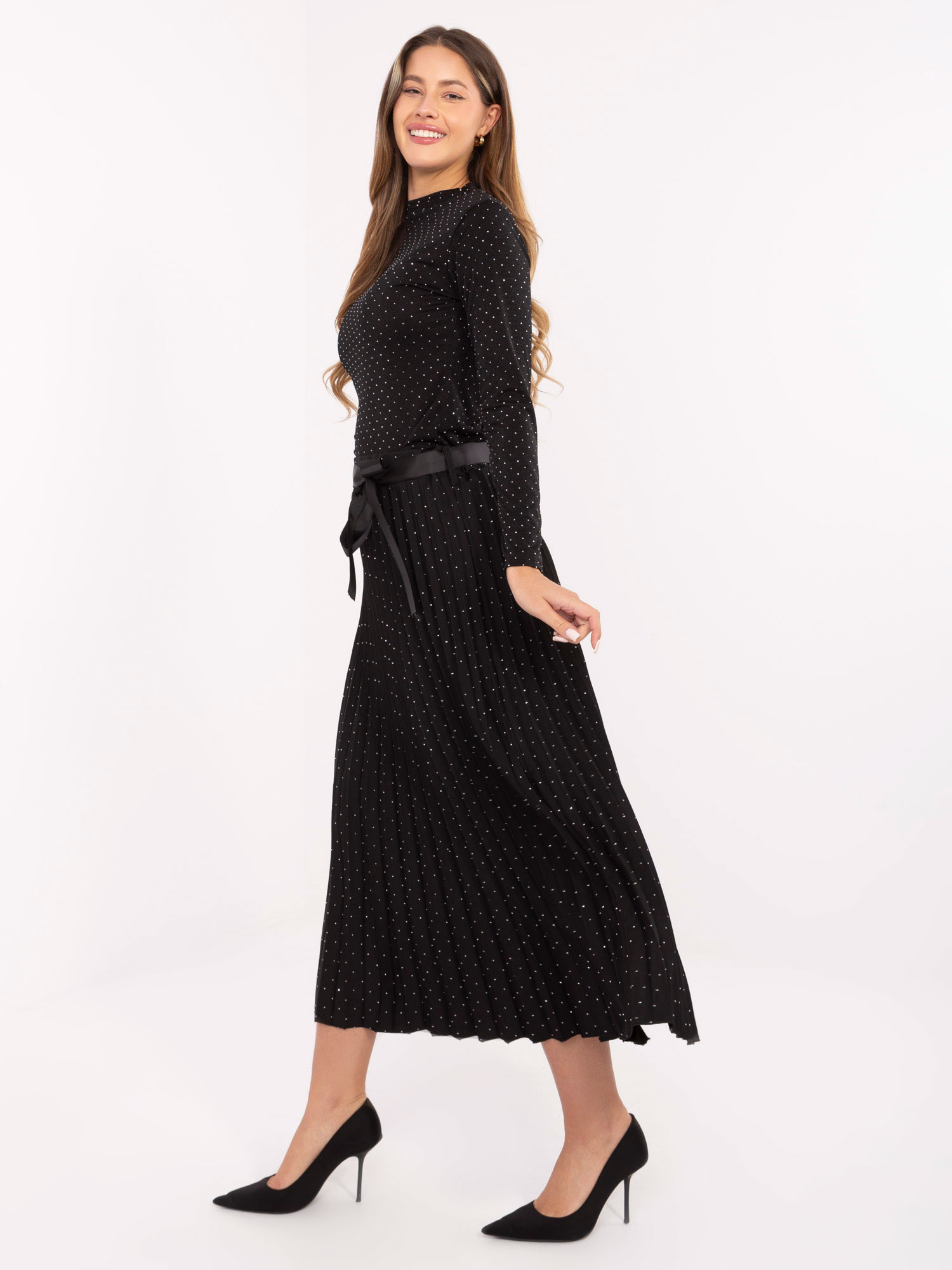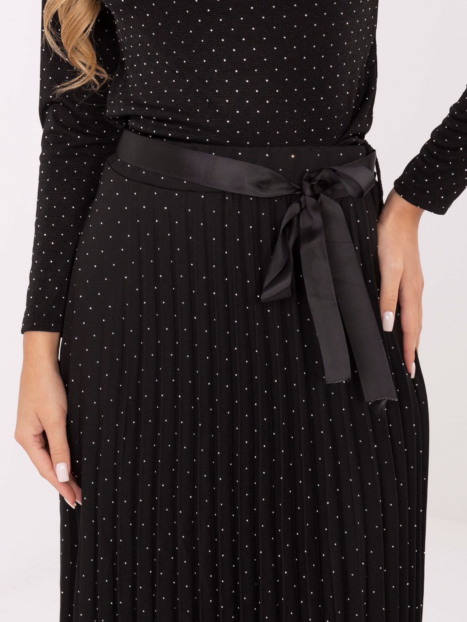 Czarna rozkloszowana spódnica z dżetami RUE PARIS .