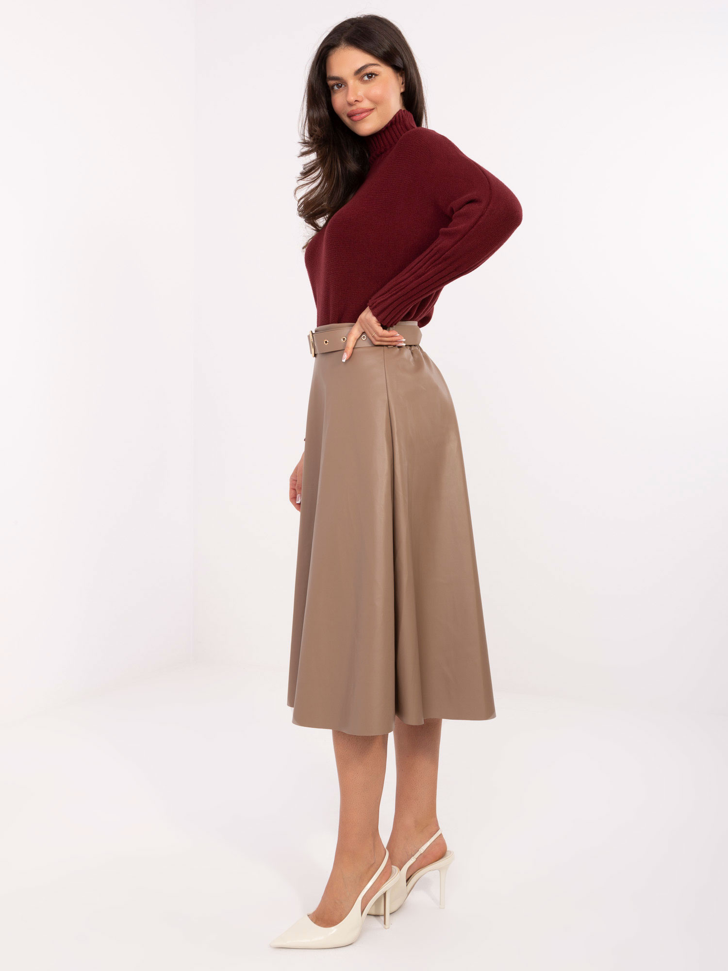 Ciemnobeżowa midi spódnica z ekoskóry .