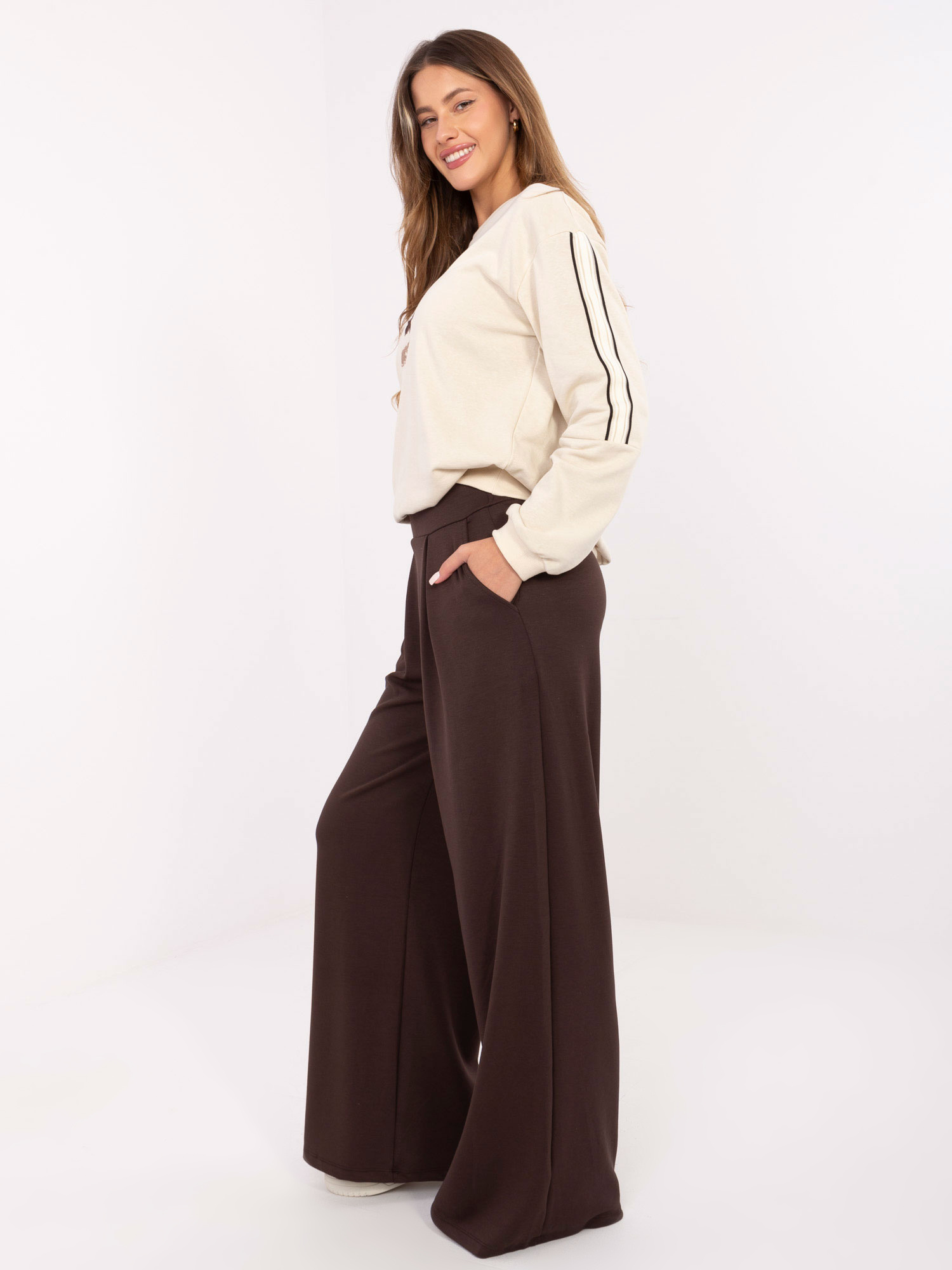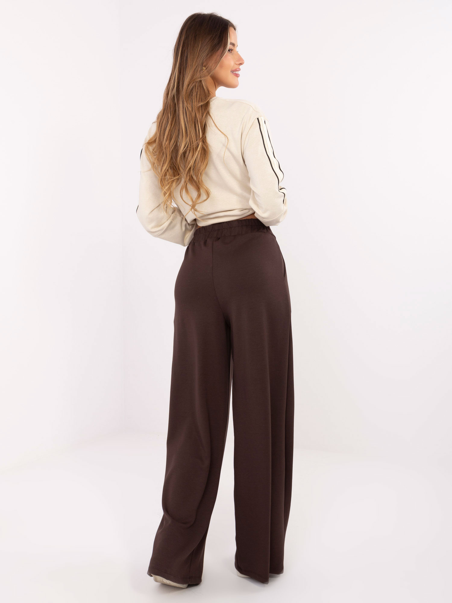 Czekoladowe szerokie spodnie basic z kieszeniami .