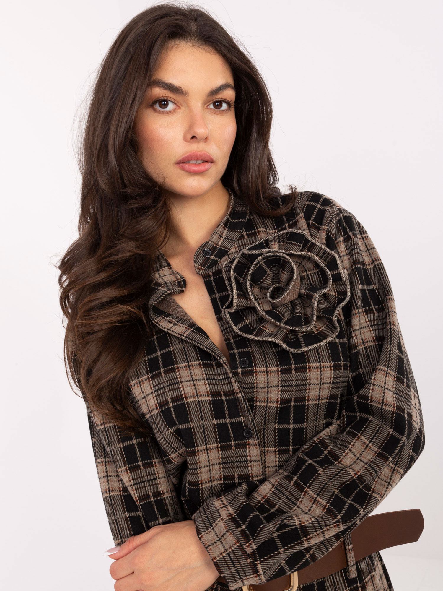 Wymiary koszuli w rozmiarze one size mierzone na płasko: szerokość pod pachami - 54 cm, długość całkowita - 62 cm (przód), długość całkowita - 67 cm (tył), długość rękawa - 57 cm, szerokość w biodrach - 55 cm.