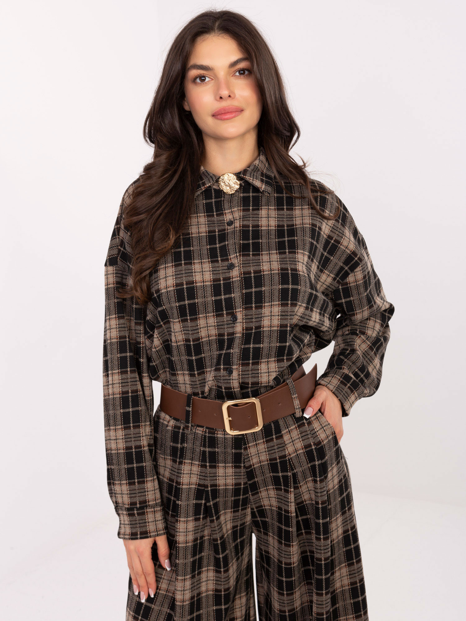 Wymiary koszuli w rozmiarze one size mierzone na płasko: szerokość pod pachami - 61 cm, długość całkowita - 63 cm (przód), długość całkowita - 69 cm (tył), długość rękawa - 47 cm, szerokość w biodrach - 56 cm.