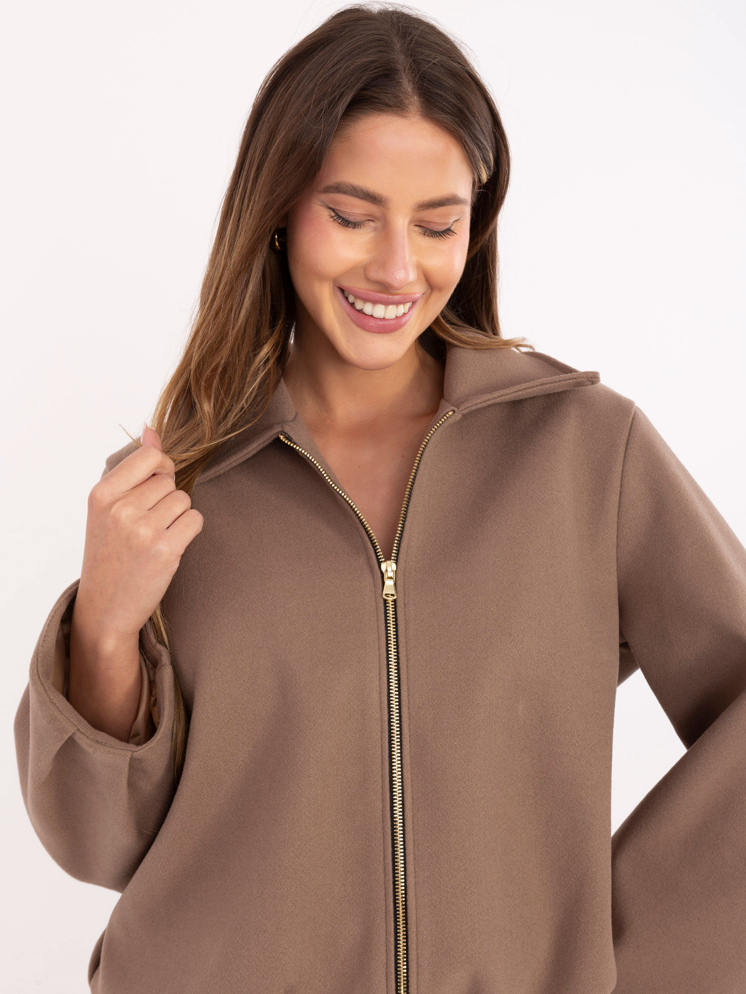 Ciemnobeżowa kurtka balloon z kieszeniami RUE PARIS .