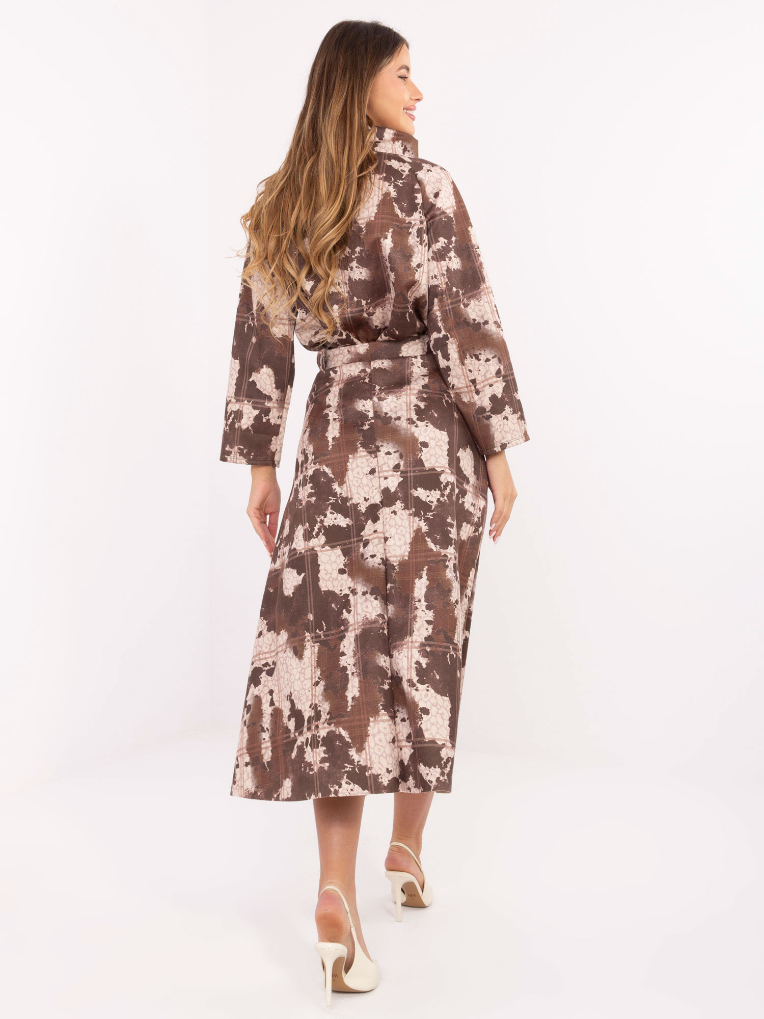 Khaki-jasnobeżowa zamszowa spódnica z printem