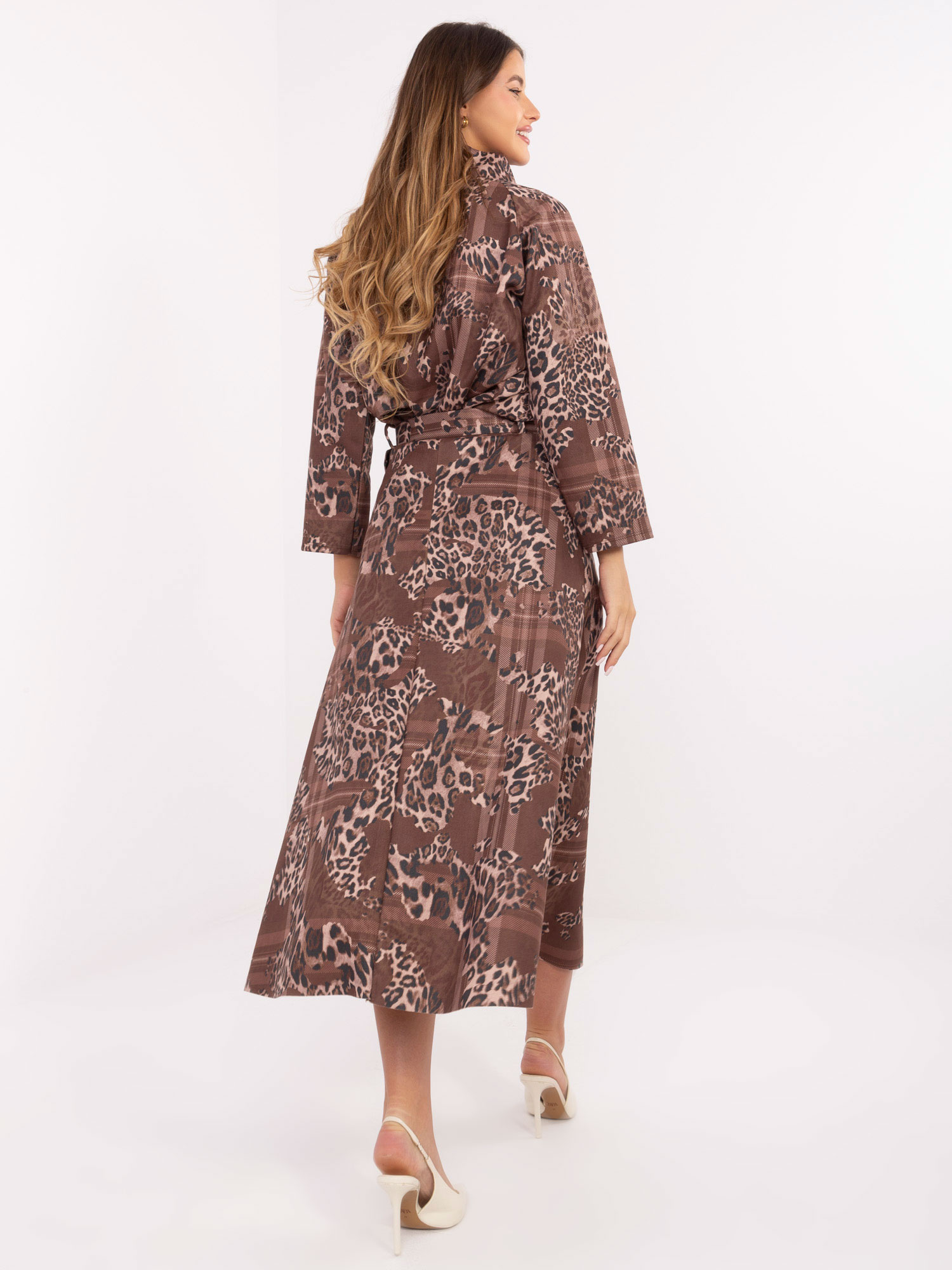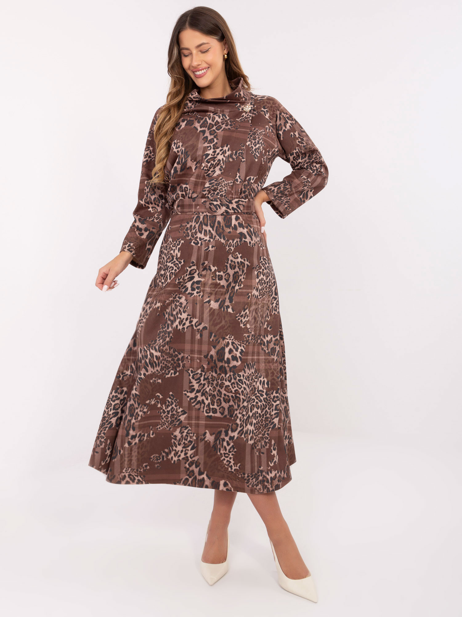 Brązowo-ciemnobeżowa rozkloszowana spódnica z paskiem