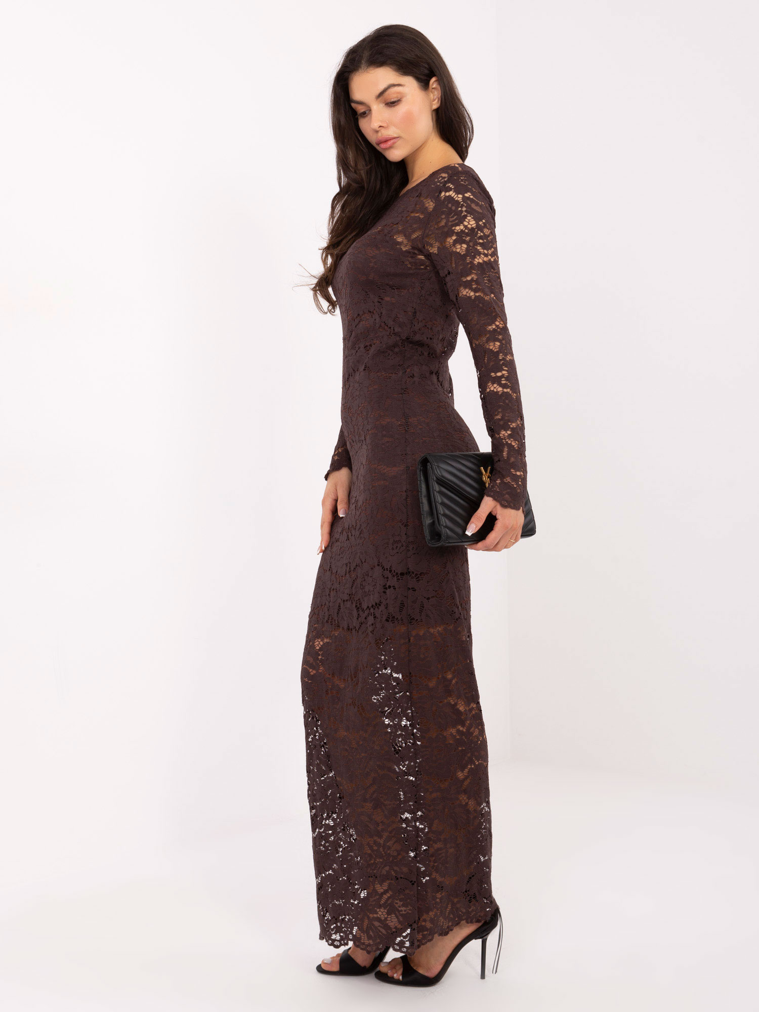 Czekoladowa koronkowa sukienka z długim rękawem RUE PARIS .