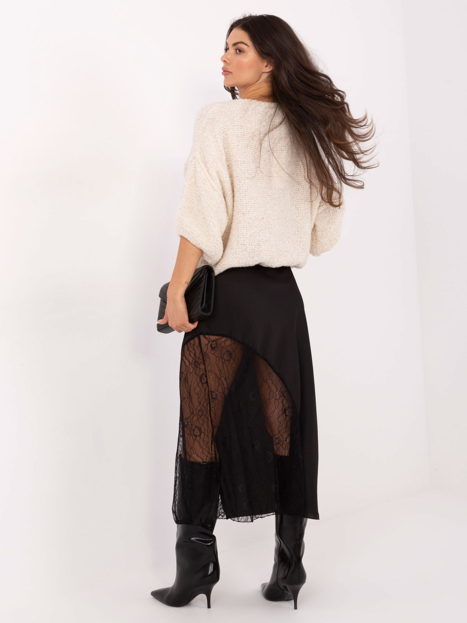 Czarna satynowa spódnica z koronką RUE PARIS .