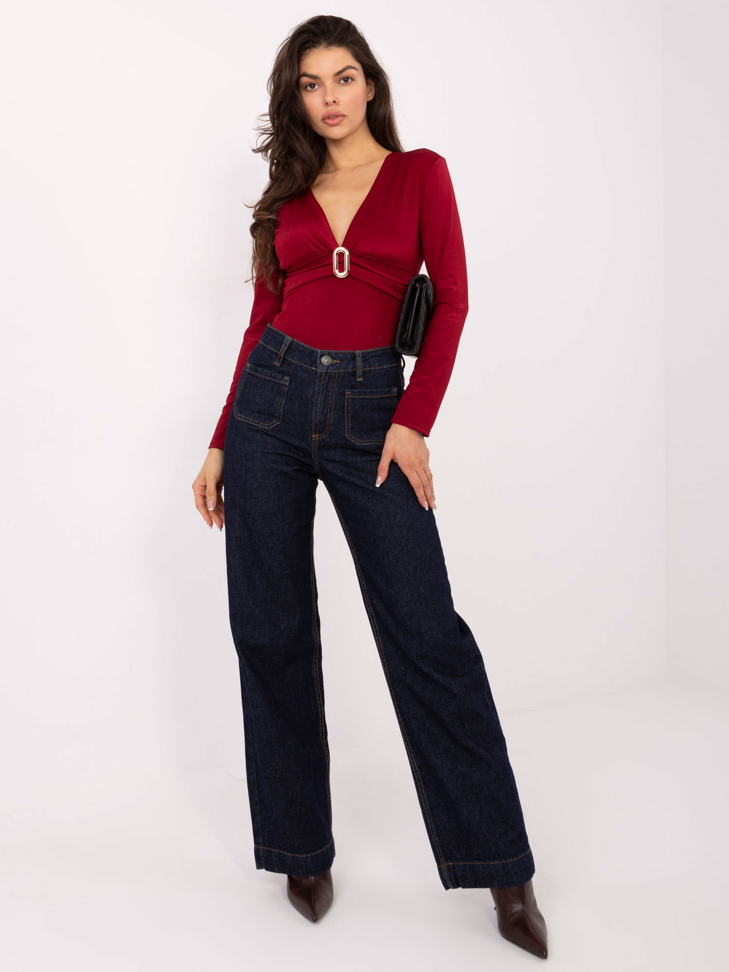 Bordowe eleganckie body z długim rękawem RUE PARIS .
