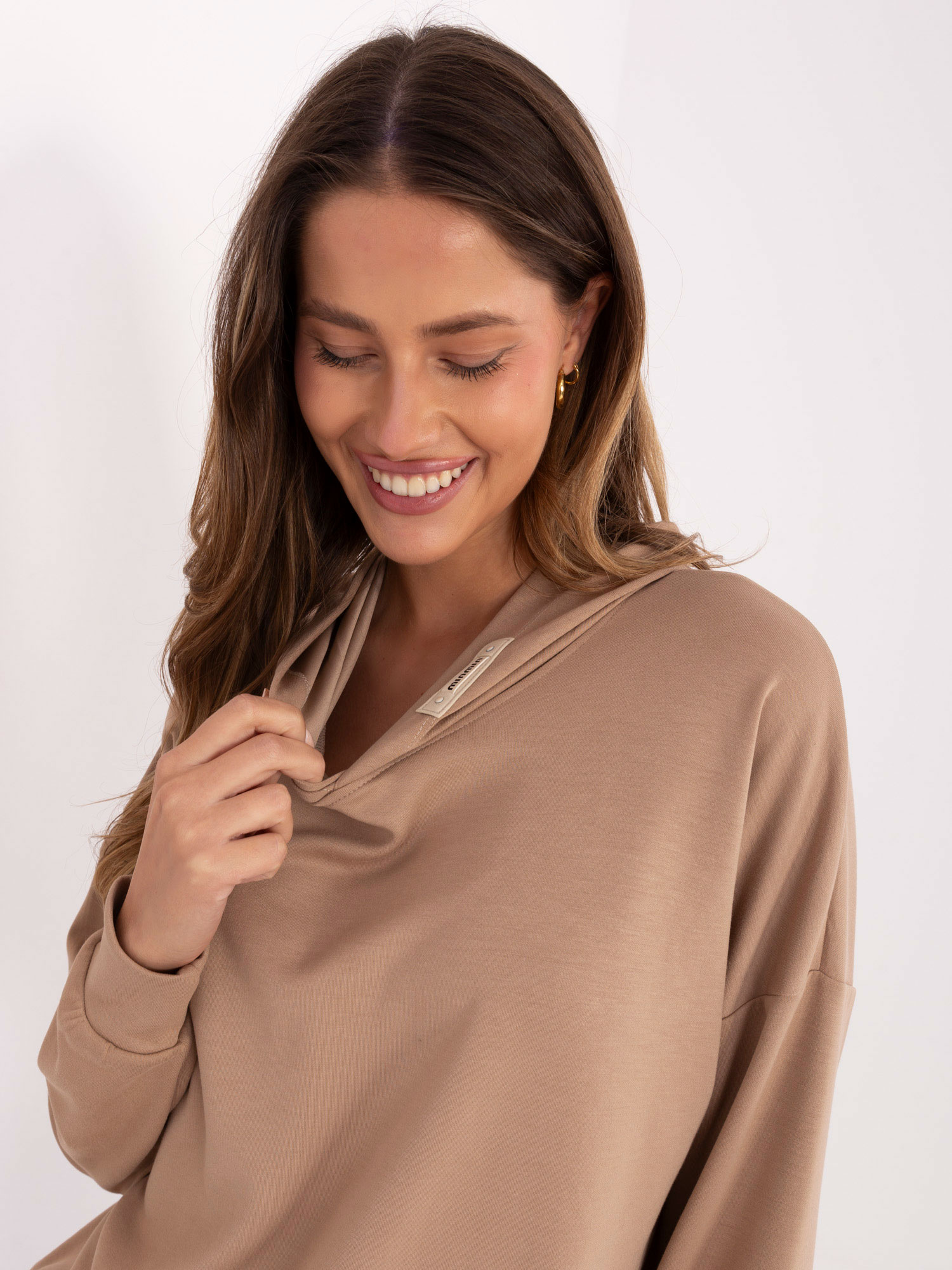 Wymiary bluzy w rozmiarze one size mierzone na płasko: szerokość pod pachami - 64 cm, długość całkowita - 68 cm, szerokość na dole - 53 cm, długość rękawa - 47 cm (od szwu).