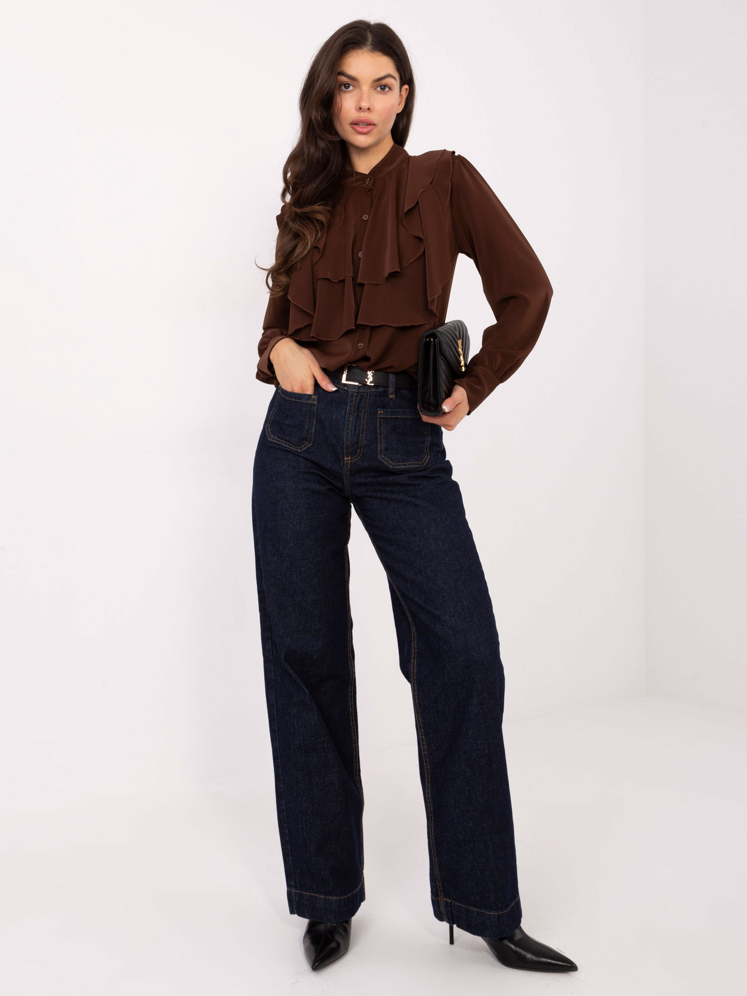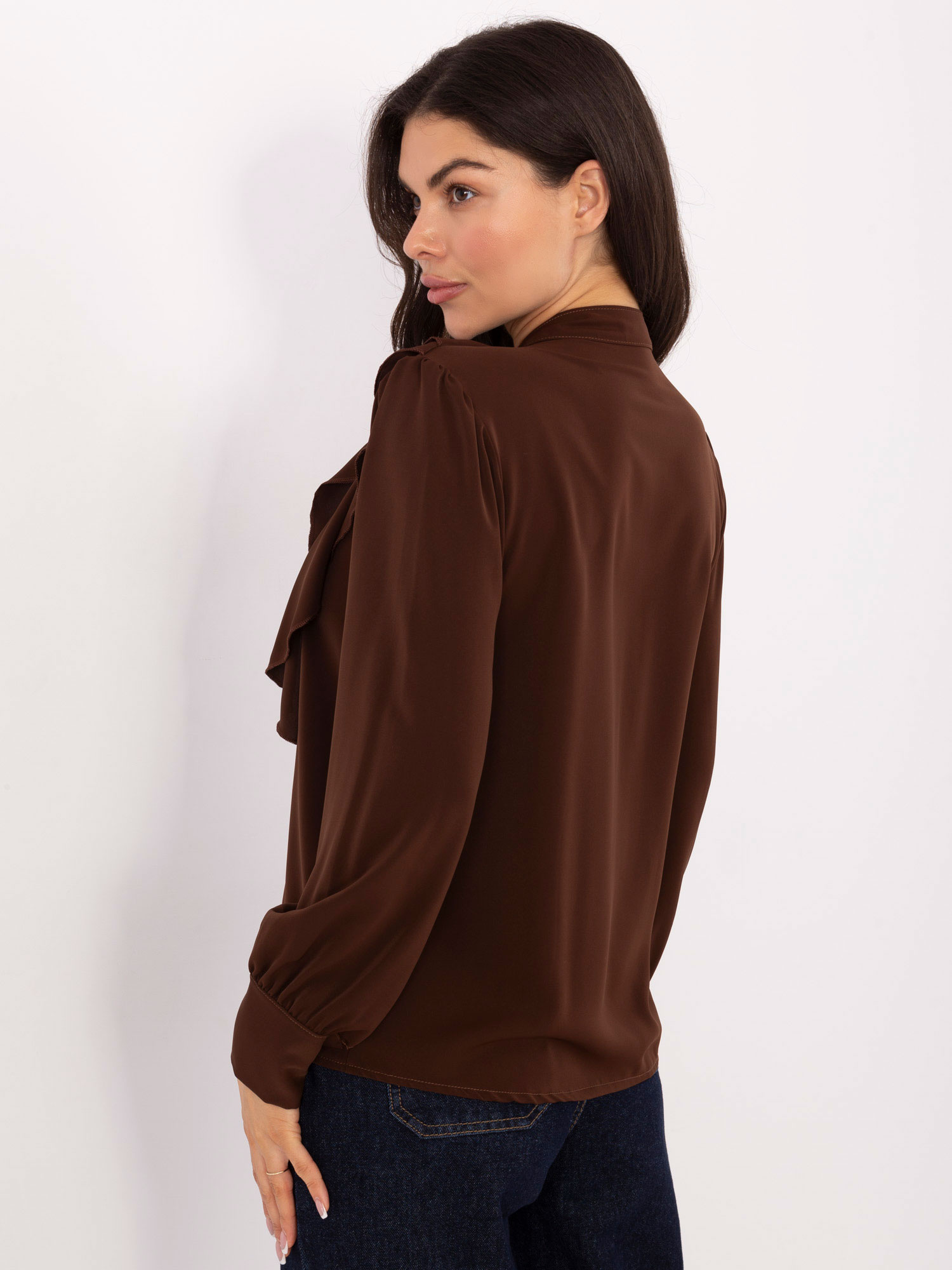 Brązowa rozpinana koszula z żabotem RUE PARIS .