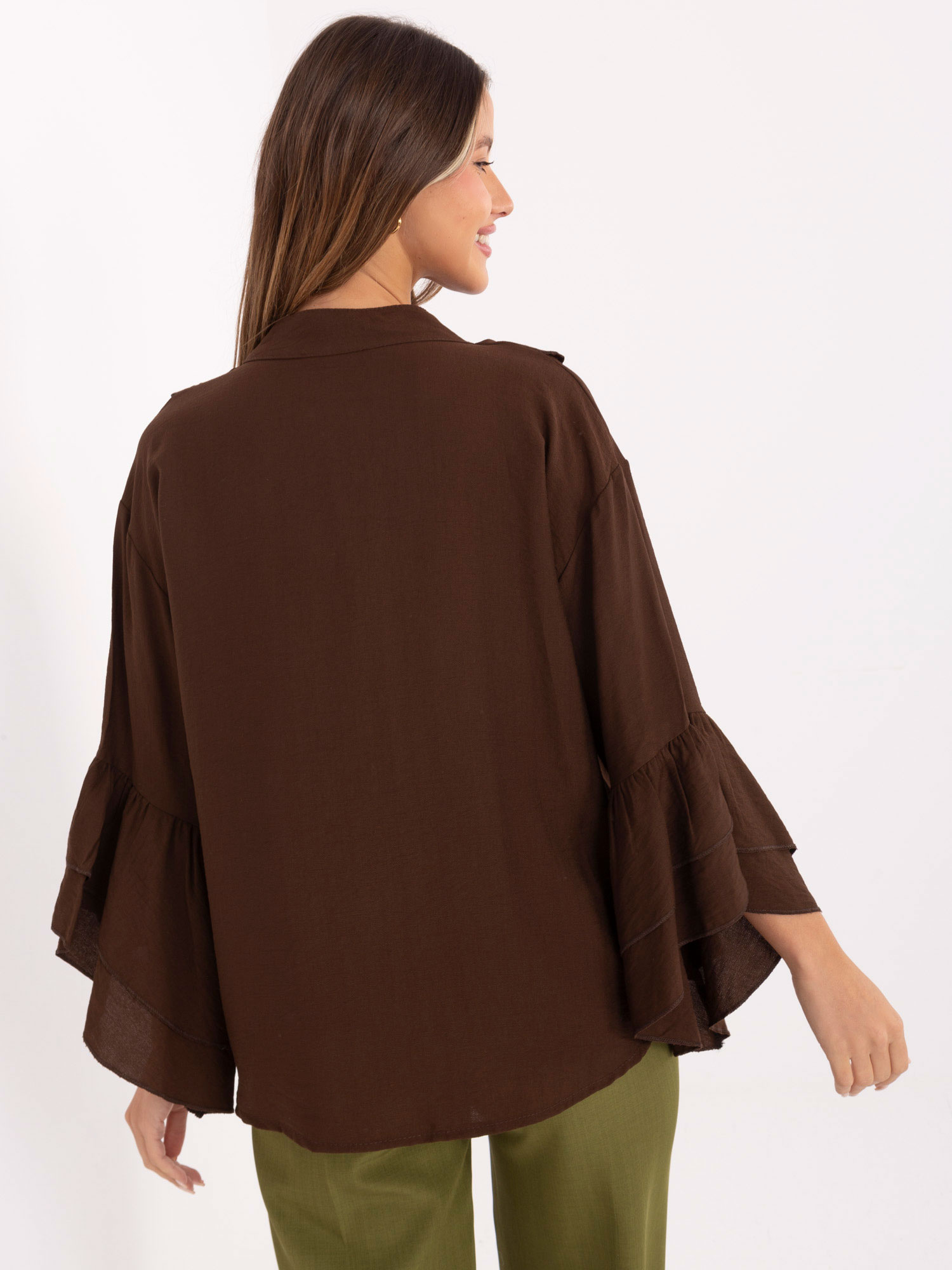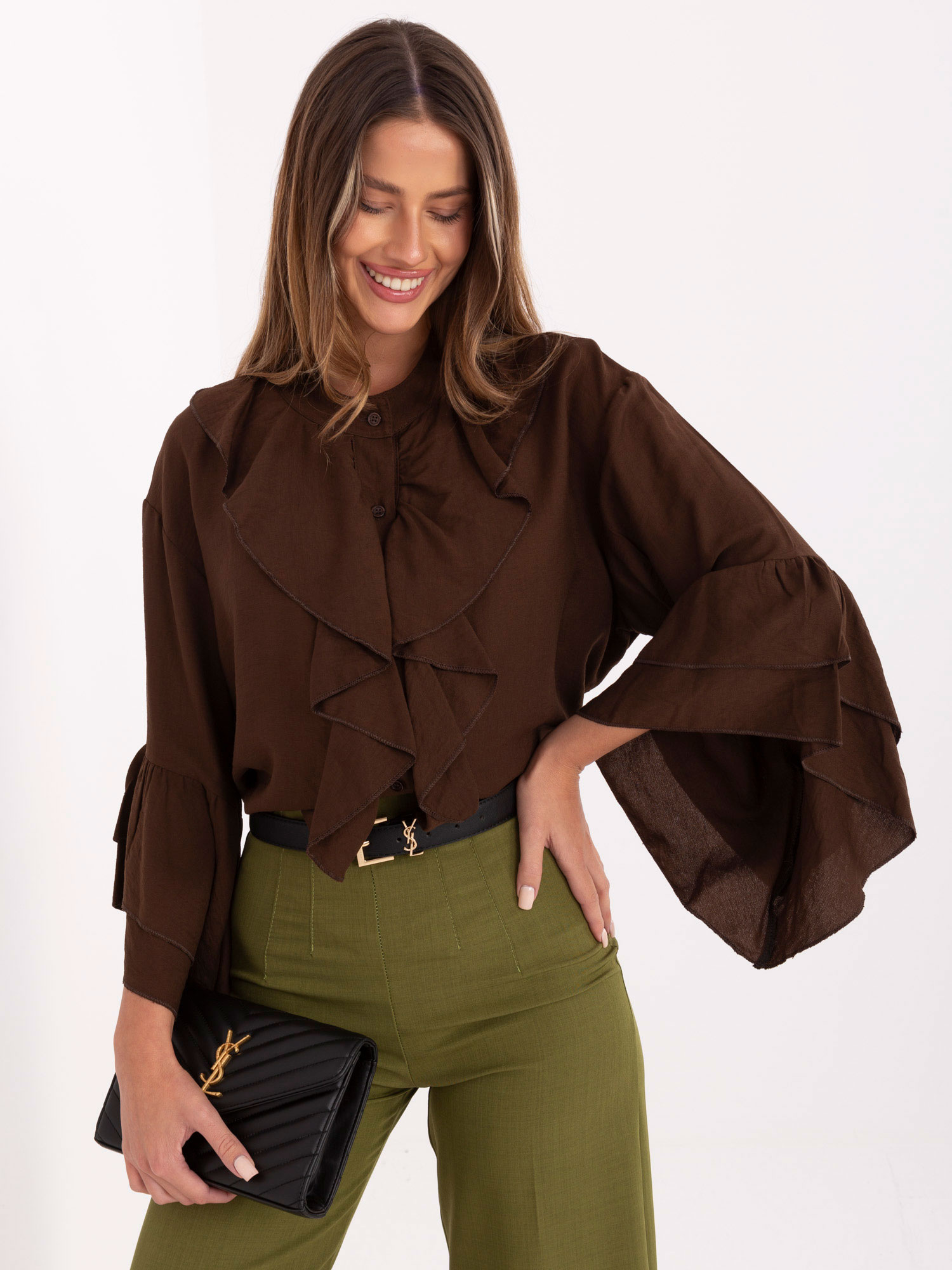 Brązowa koszula z falbankami przy rękawach RUE PARIS .