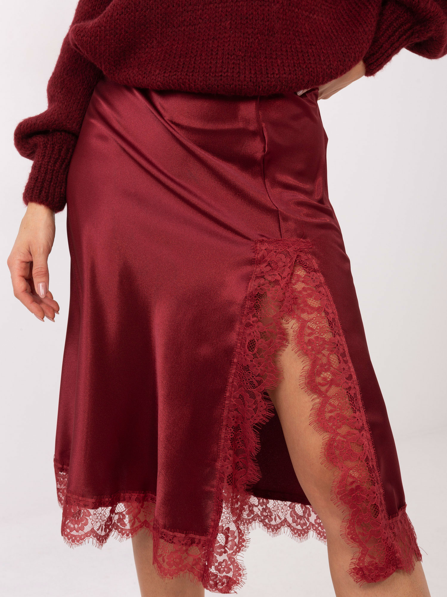Bordowa elegancka spódnica z koronką RUE PARIS .