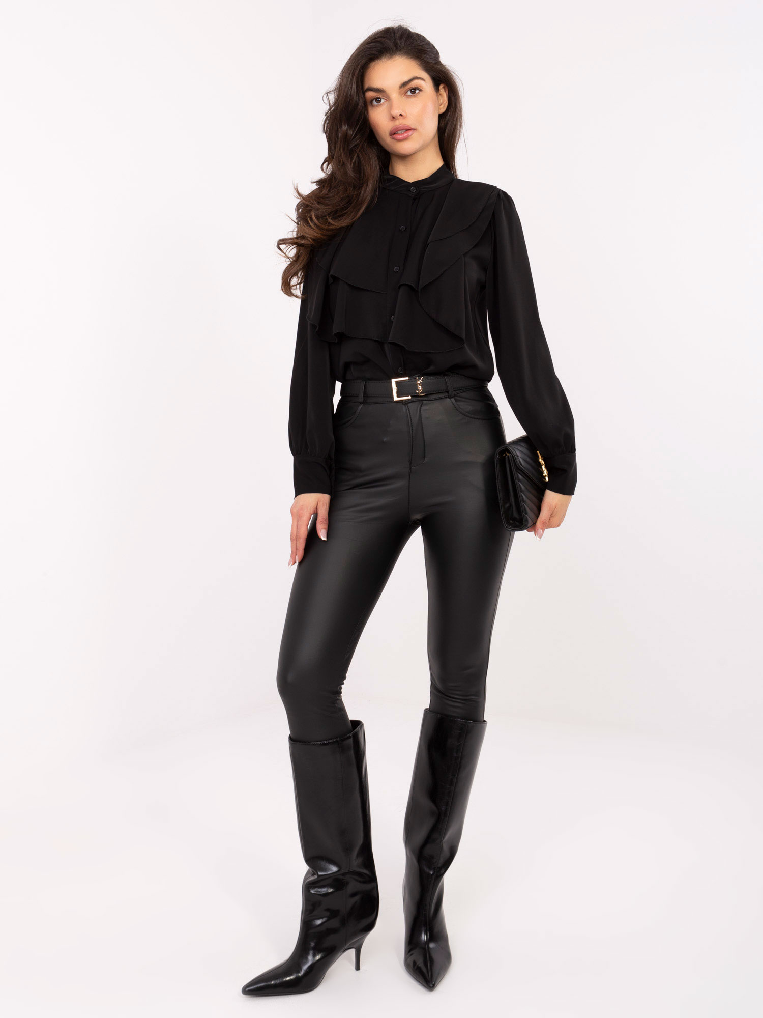 Czarna rozpinana koszula z żabotem RUE PARIS .