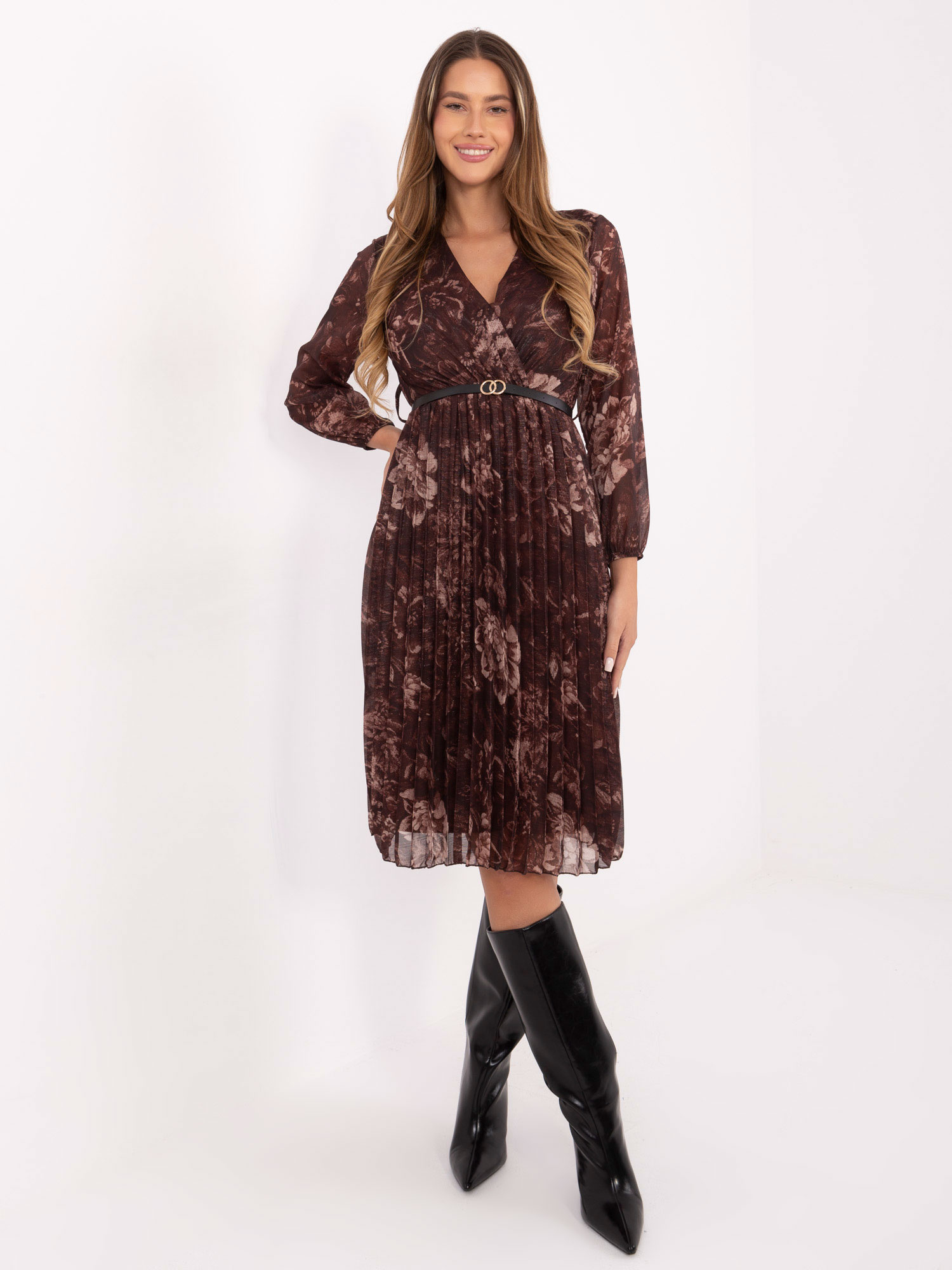 Wymiary sukienki w rozmiarze one size mierzone na płasko: szerokość pod pachami - 45 cm, długość rękawa - 57 cm, szerokość w talii - 32 cm, szerokość w biodrach - 65 cm, długość całkowita - 110 cm.