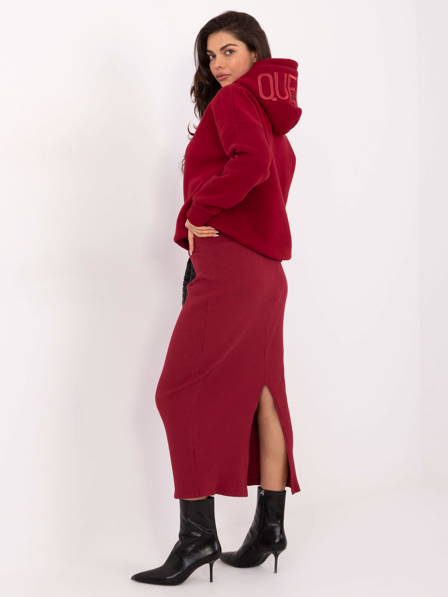 Bordowa spódnica basic z rozcięciem z tyłu .