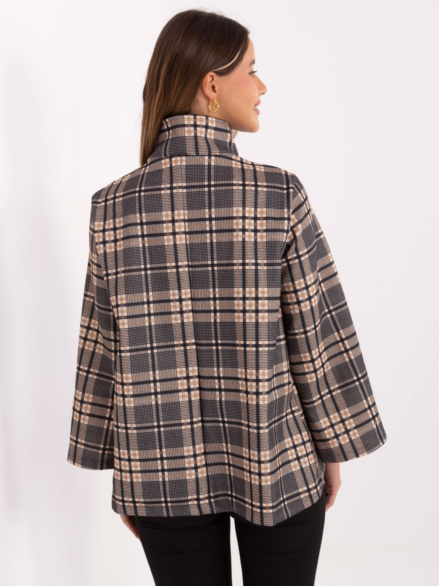 Jasnobeżowo-czarny krótki płaszcz w kratę .