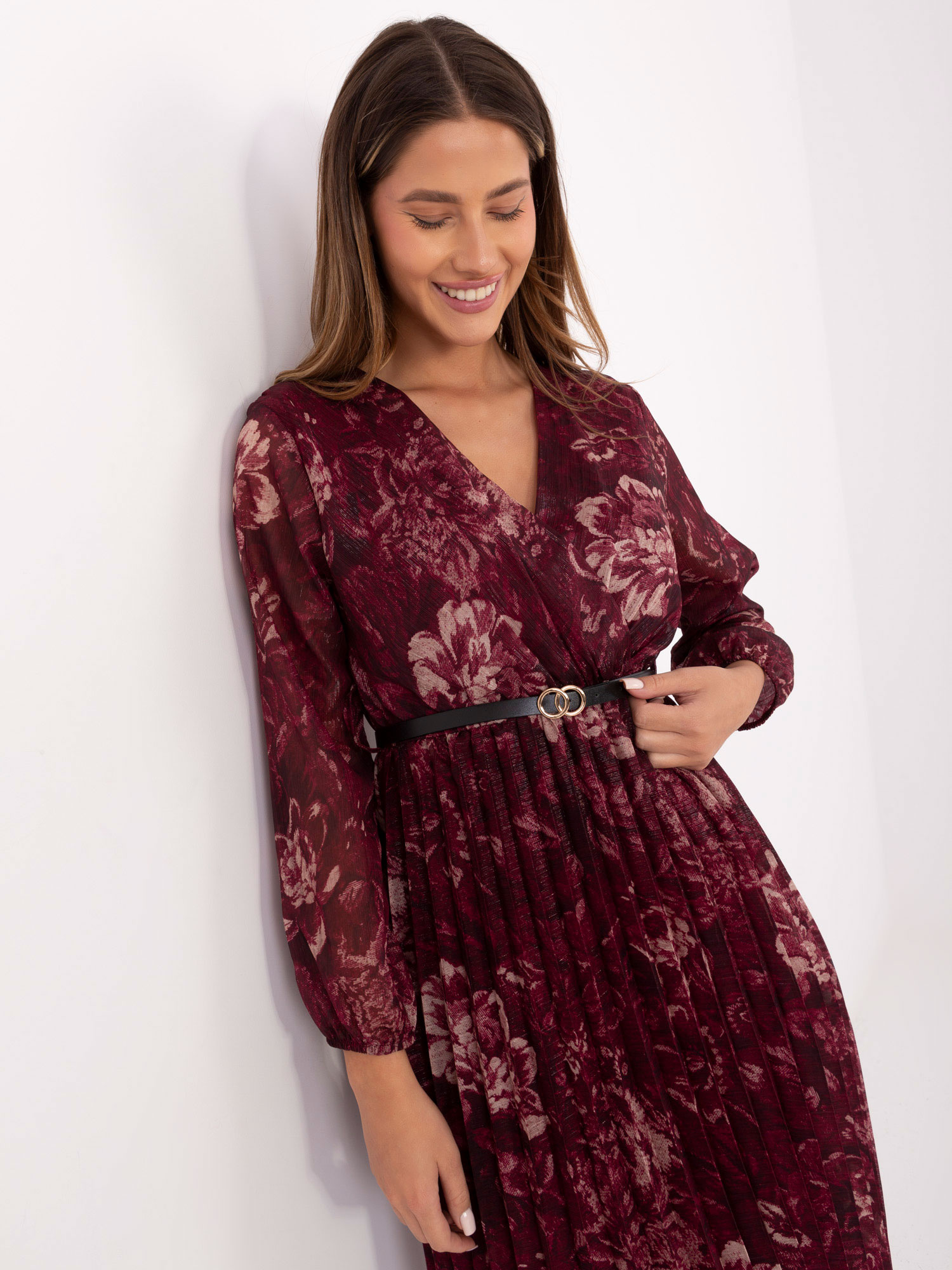 Wymiary sukienki w rozmiarze one size mierzone na płasko: szerokość pod pachami - 45 cm, długość rękawa - 57 cm, szerokość w talii - 32 cm, szerokość w biodrach - 65 cm, długość całkowita - 110 cm.