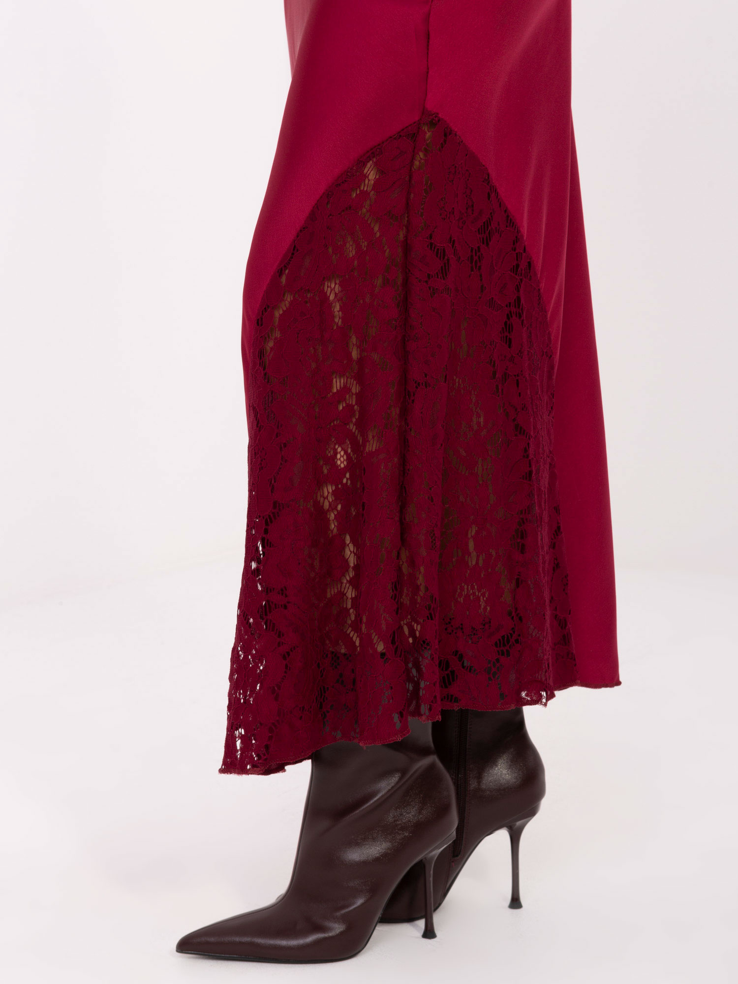 Burgundowa satynowa spódnica o kroju syrenki RUE PARIS .