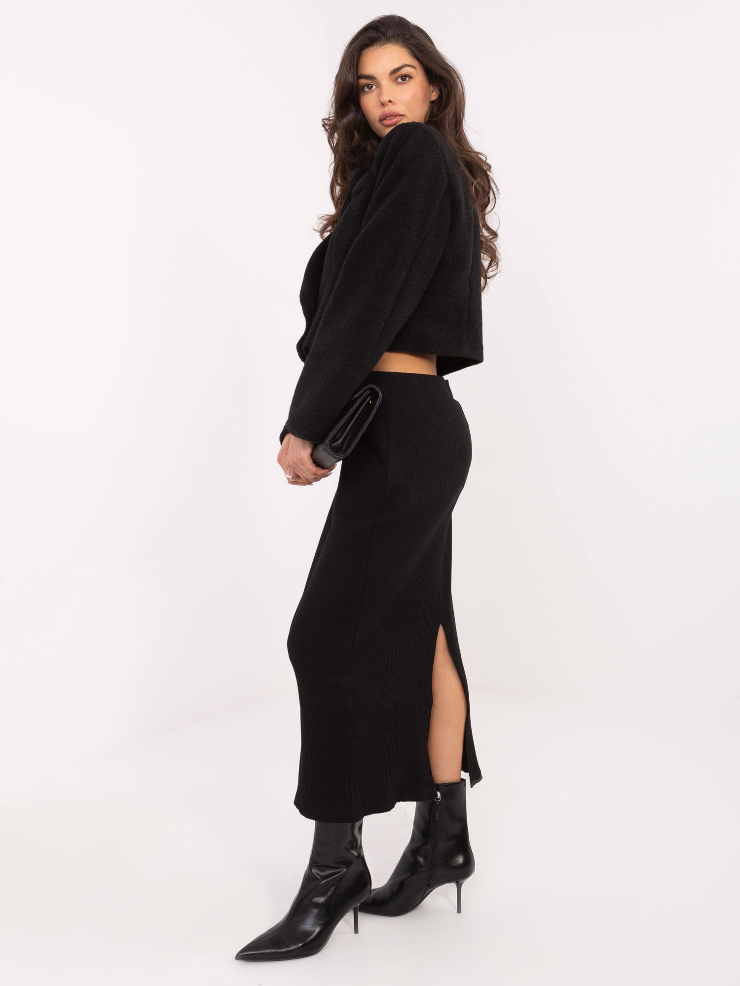 Czarny elegancki płaszcz boucle RUE PARIS .