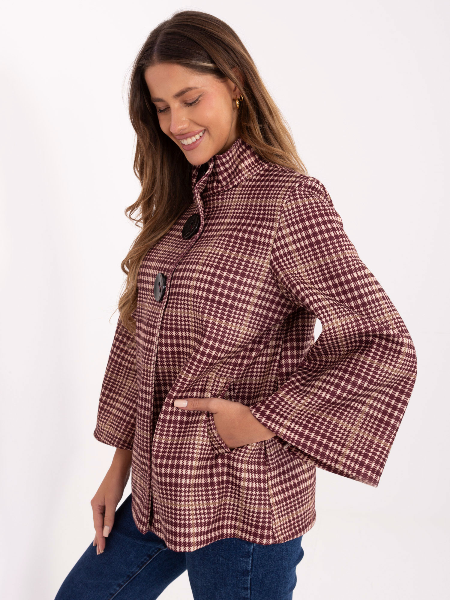 Jasnobeżowo-bordowy płaszcz z szerokimi rękawami