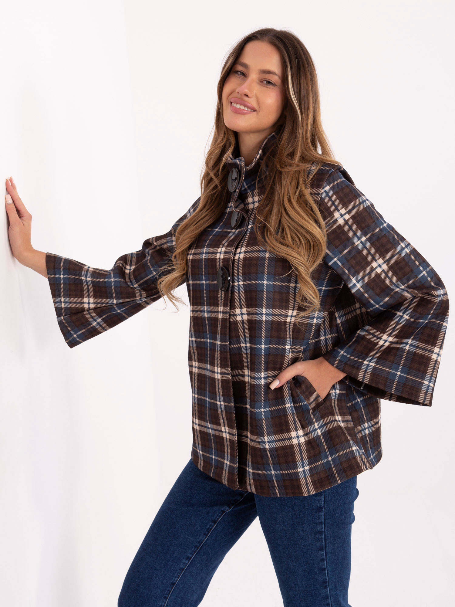 Ciemnobrązowo-niebieski płaszcz ze stójką